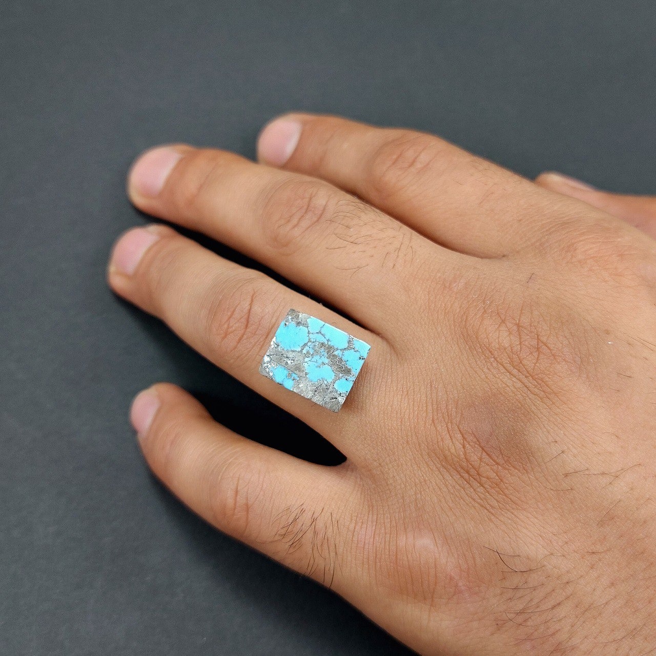 فیروزه زیبای مستطیلی دارای نقوش پنبهای آبی آسمانی