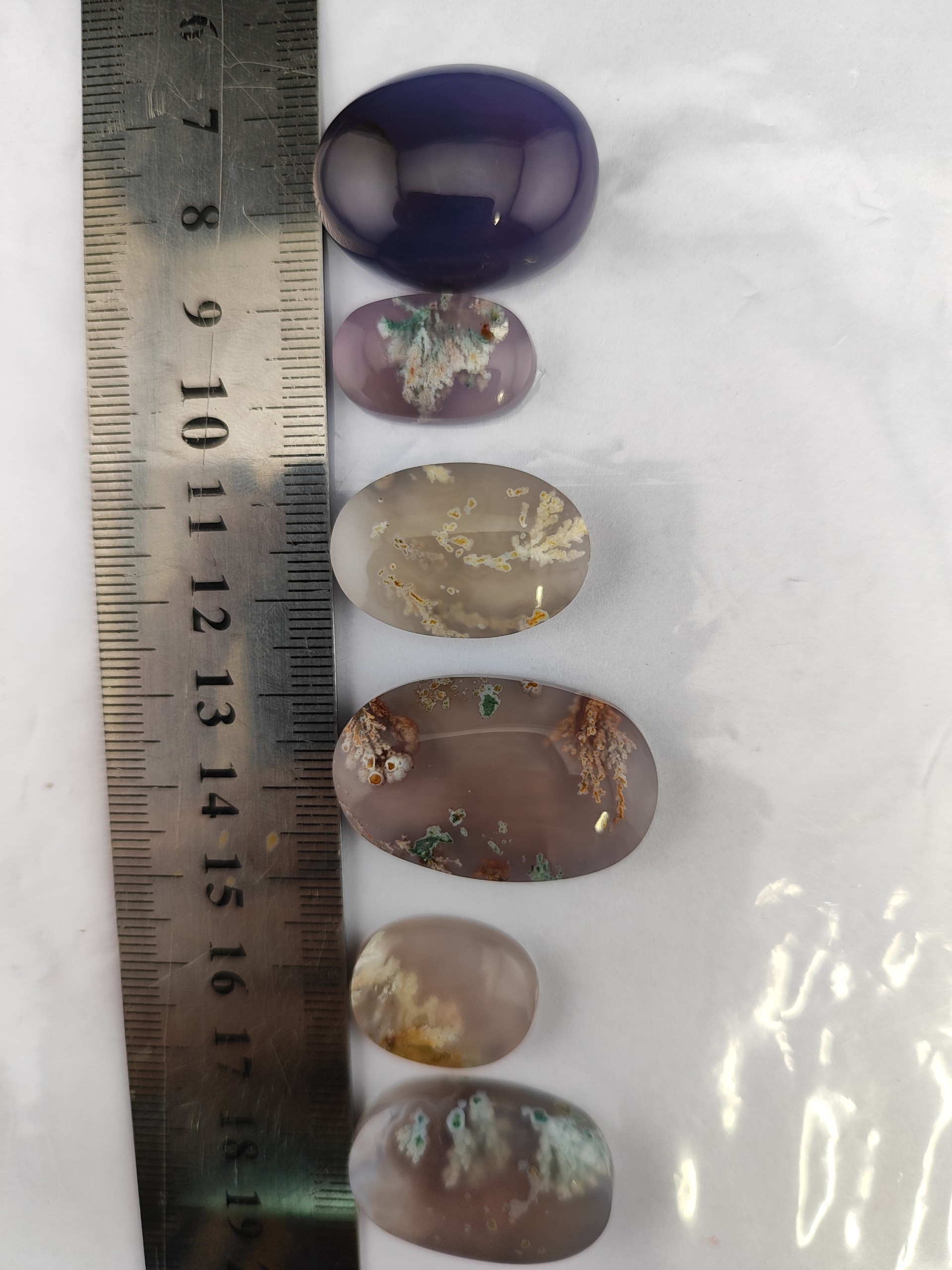 شش عدد عقیق شجر و سوسنی مناسب برای گردنبند و جواهر