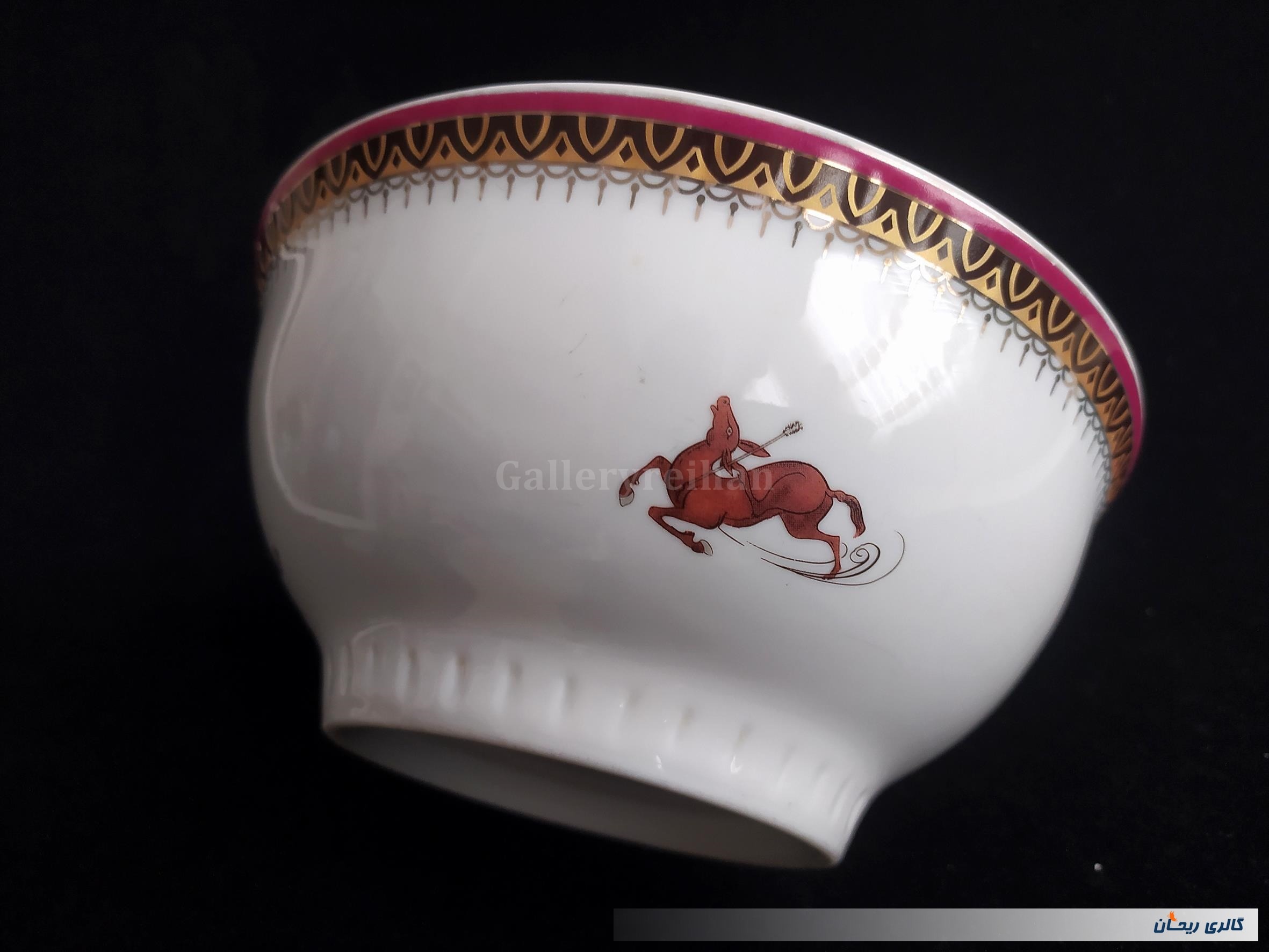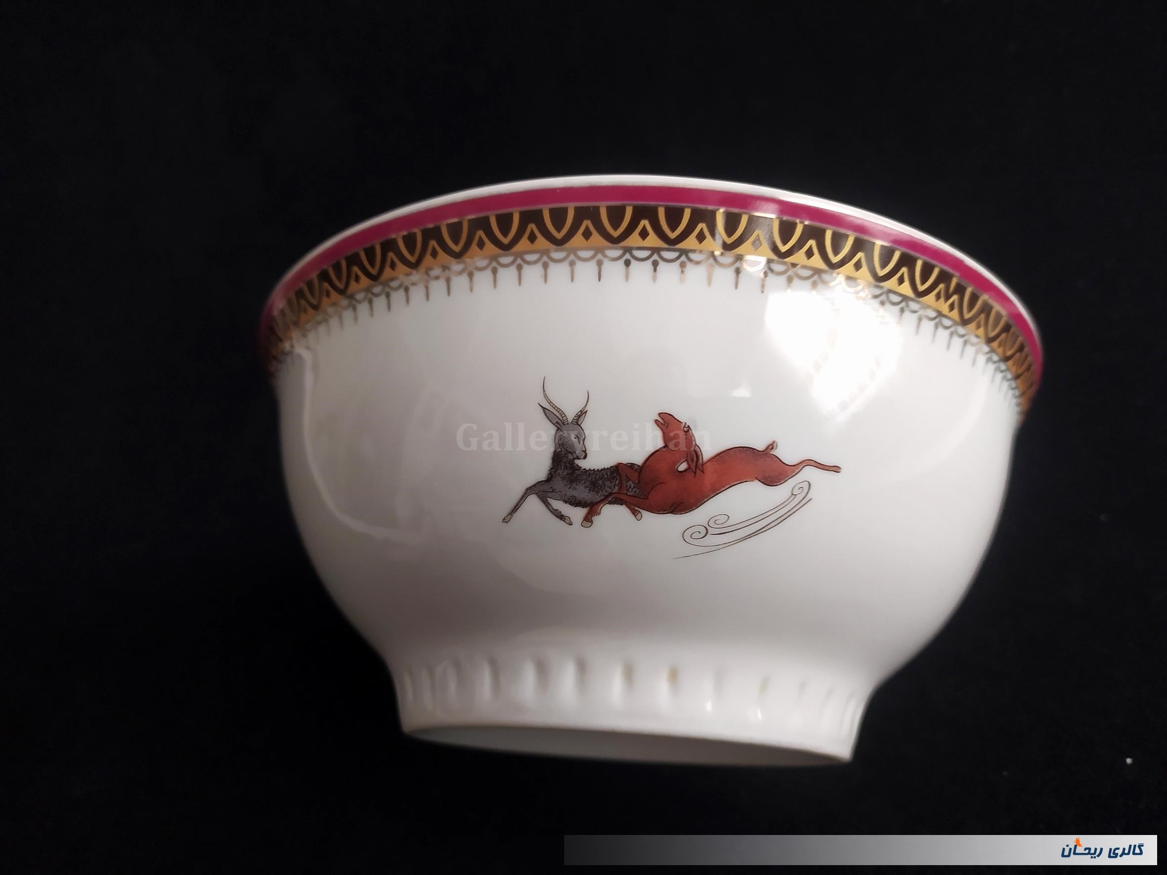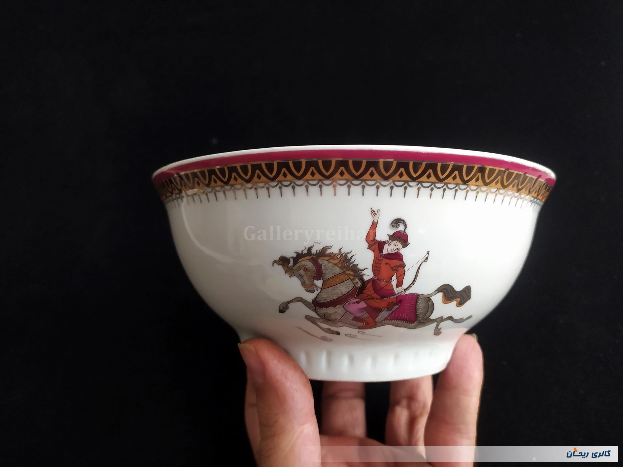 کاسه چینی قدیمی طرح شکارگاه لاکی رنگ (کد47164)