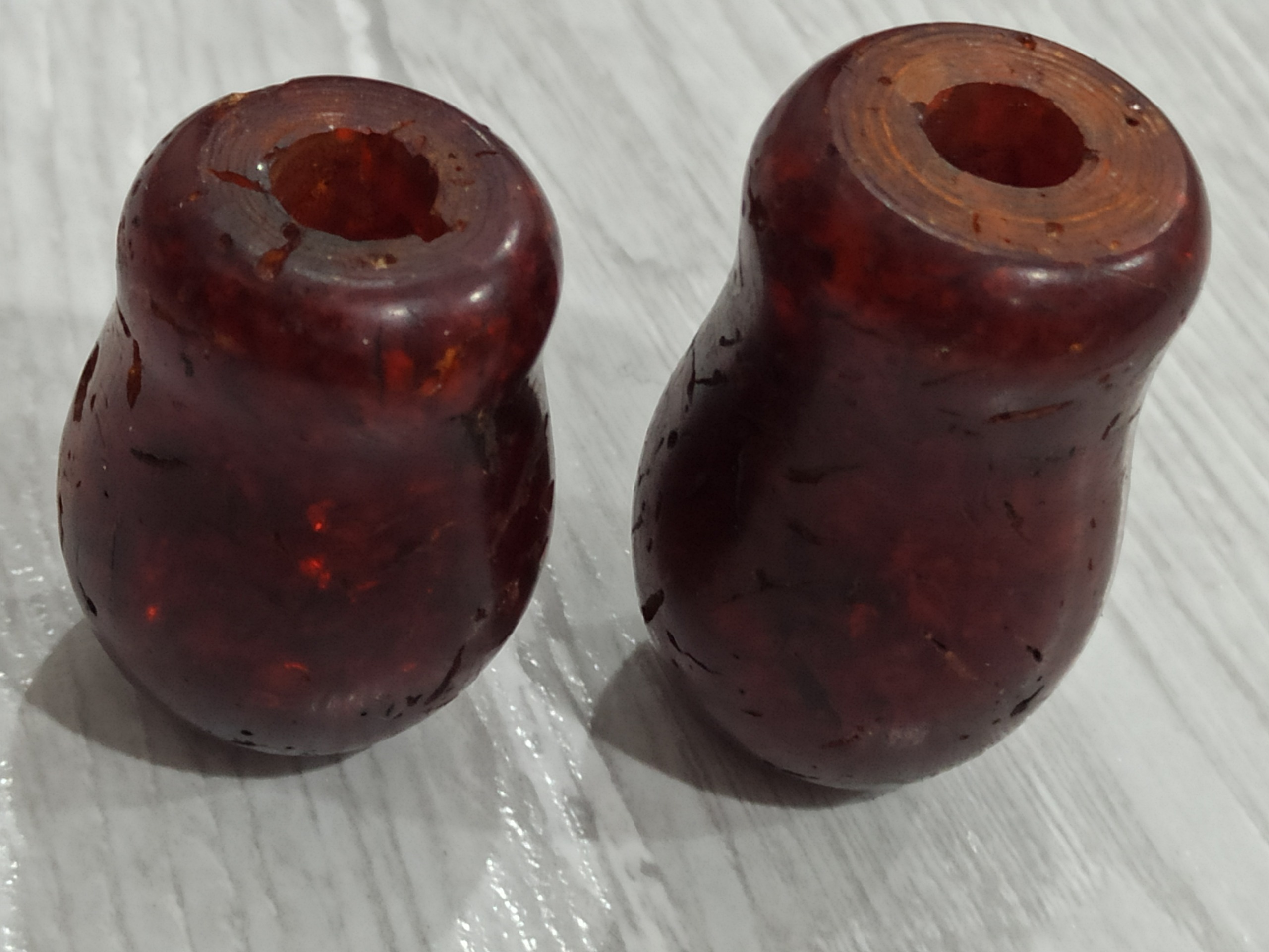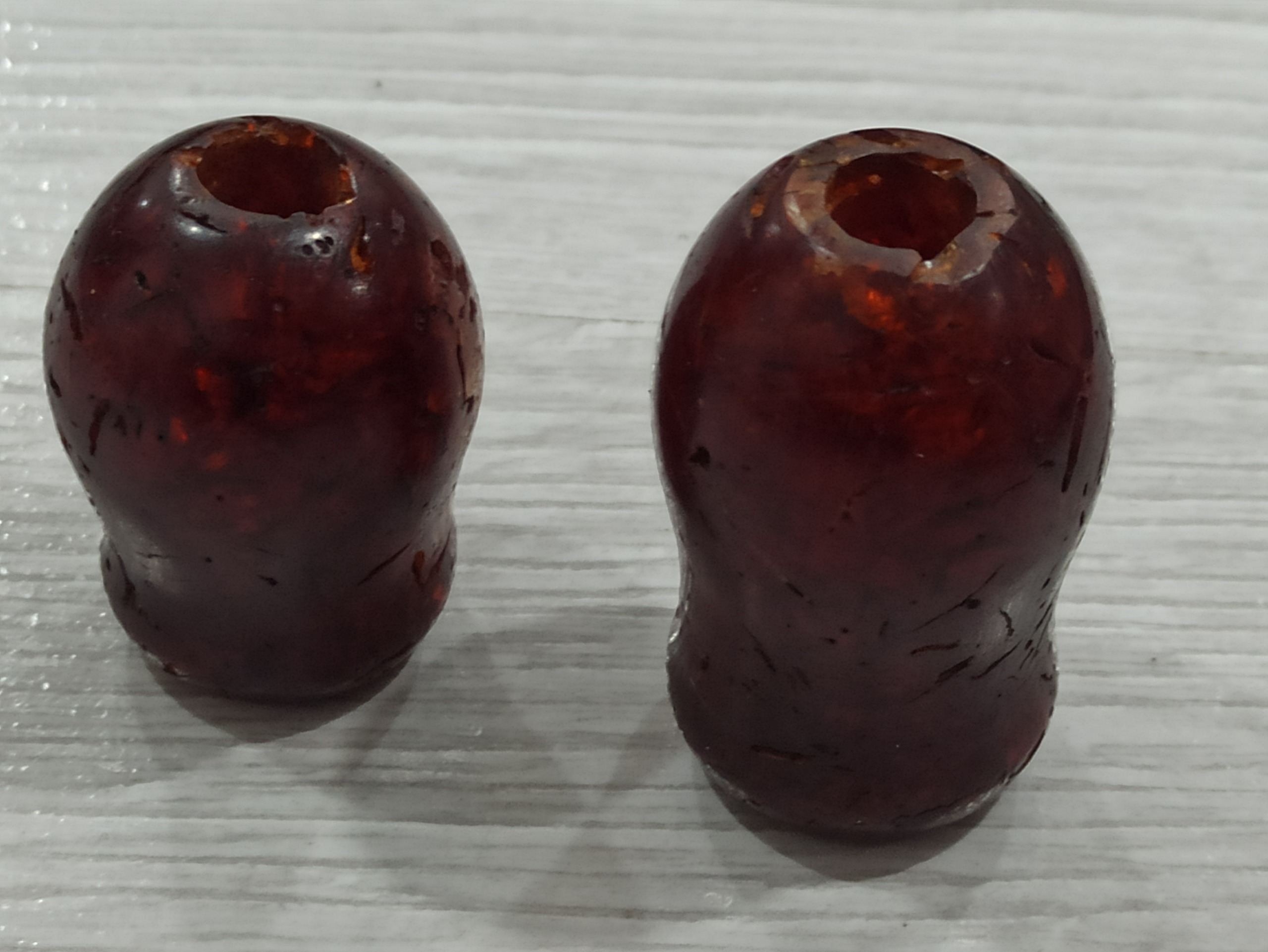 مهره تزیینی هستند جنسشون شاید پلاستیک باشه شایدم یه چیز دیگه باشه ولی به هیچ وجه کهربا نیست