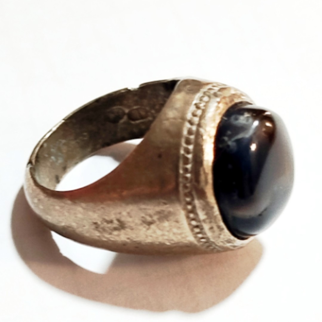 انگشتر نفیس جزع دودی یمنی رکاب نیمه دستساز