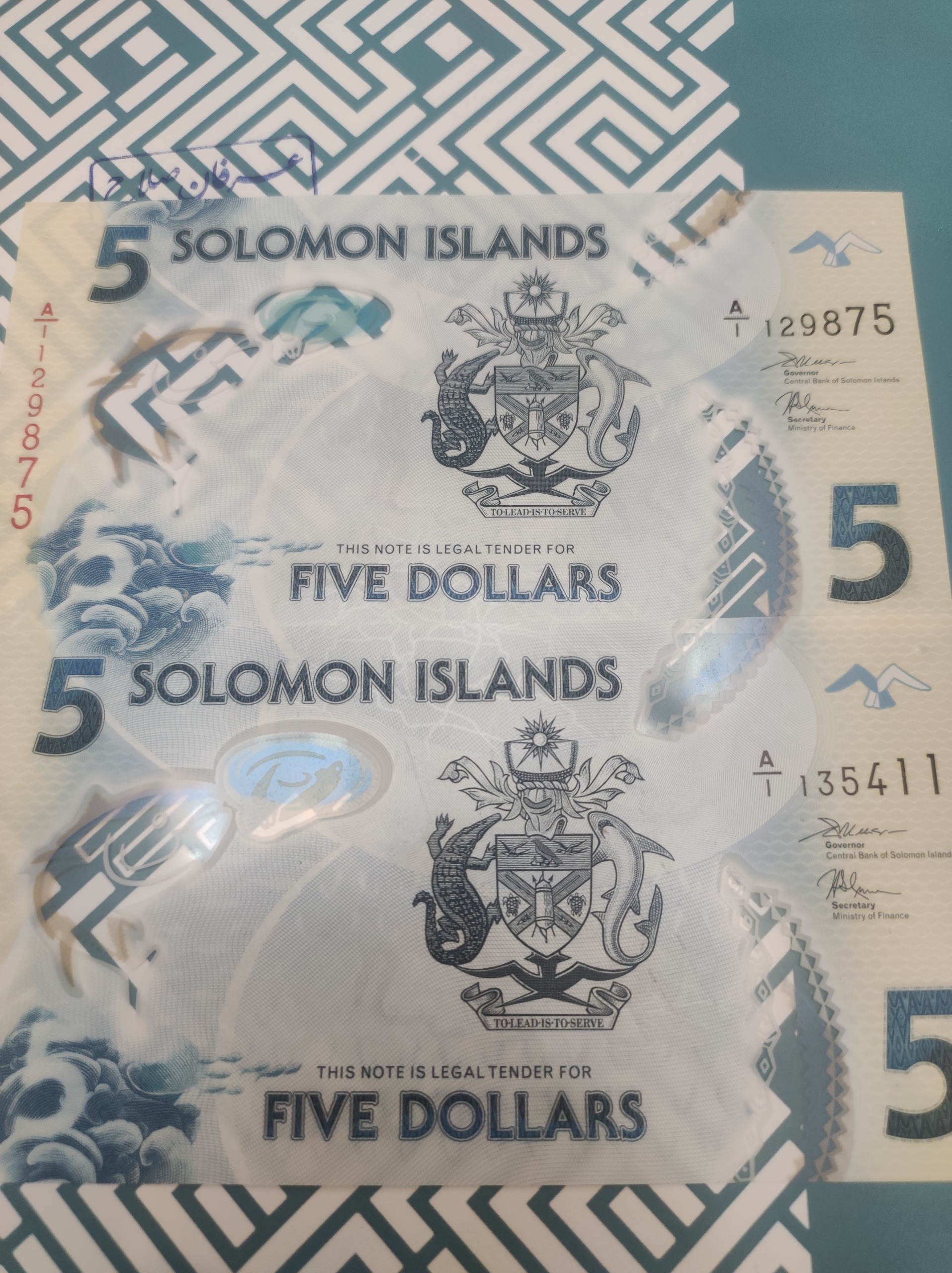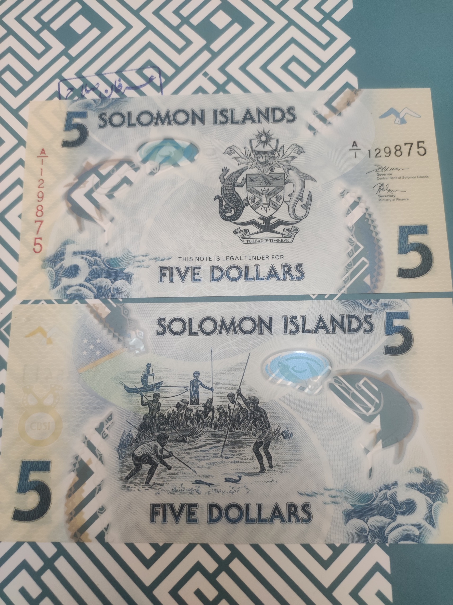 اسکناس نو و پلیمری و بانکی ،پنج دلاری جزایر سلیمان ،بسیار زیبا و ارزشمند