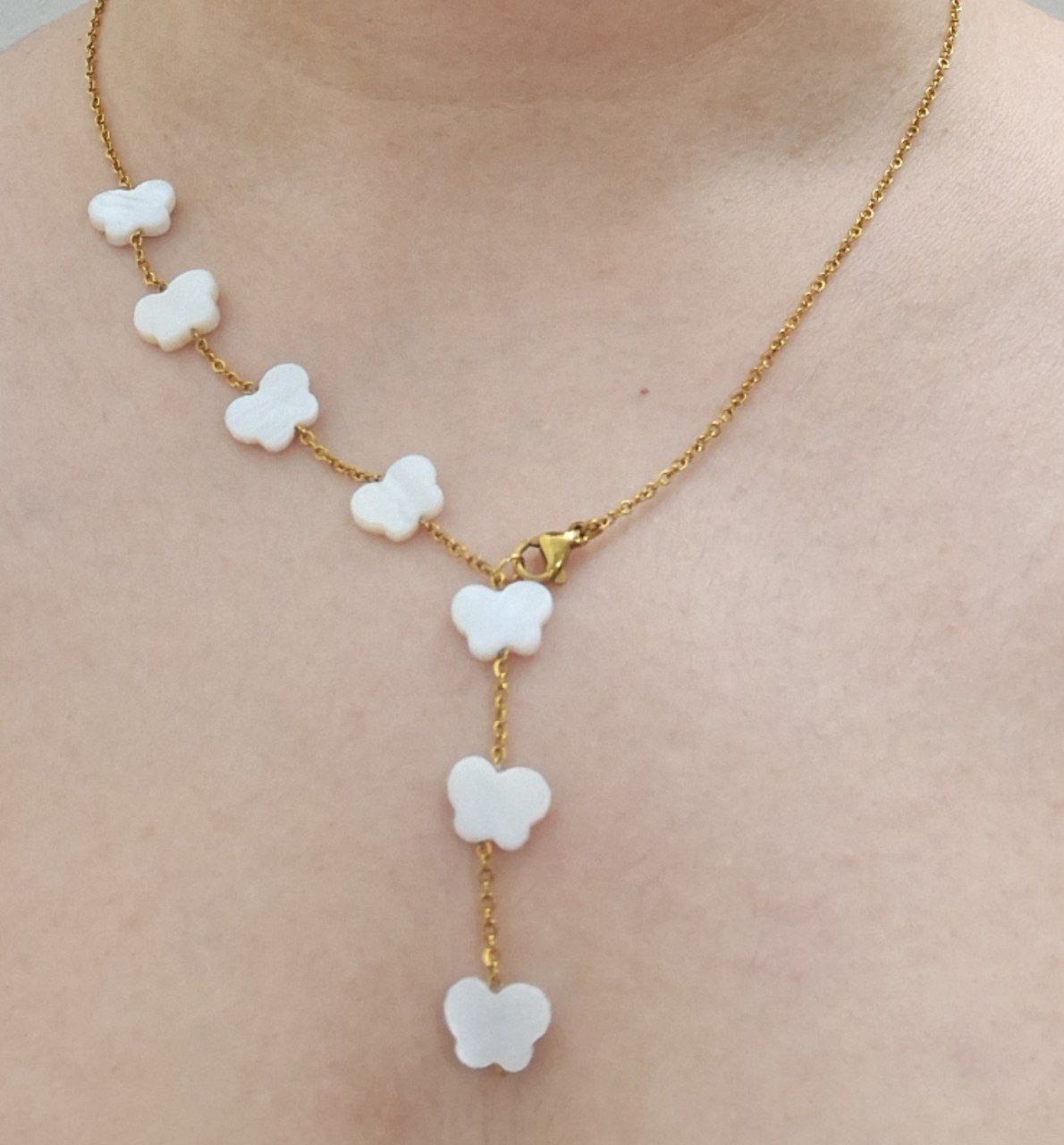 نیم ست لاکچری صدف طبیعی طرح پروانه کد E 520