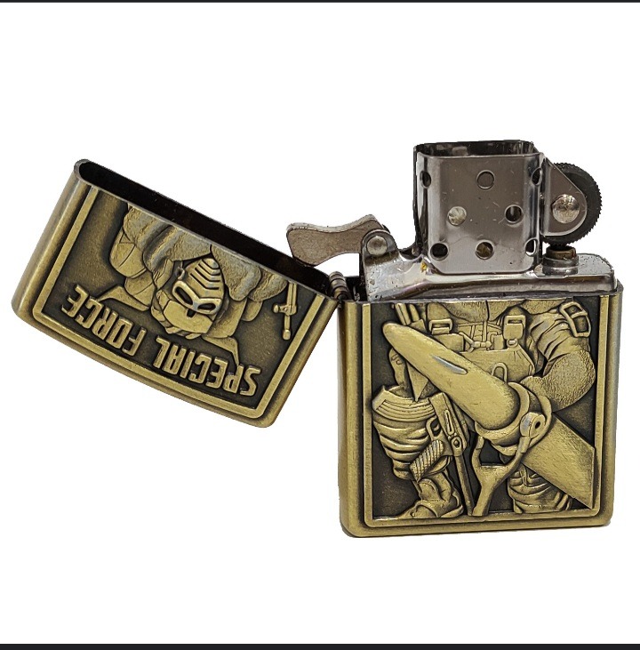 فندک طرح زیپو با طرح سه بعدی . بطری بنزین زیپو فندک با حجم 20 میلیلیتر. یک عدد سیگار همراه جعبه فلزی
