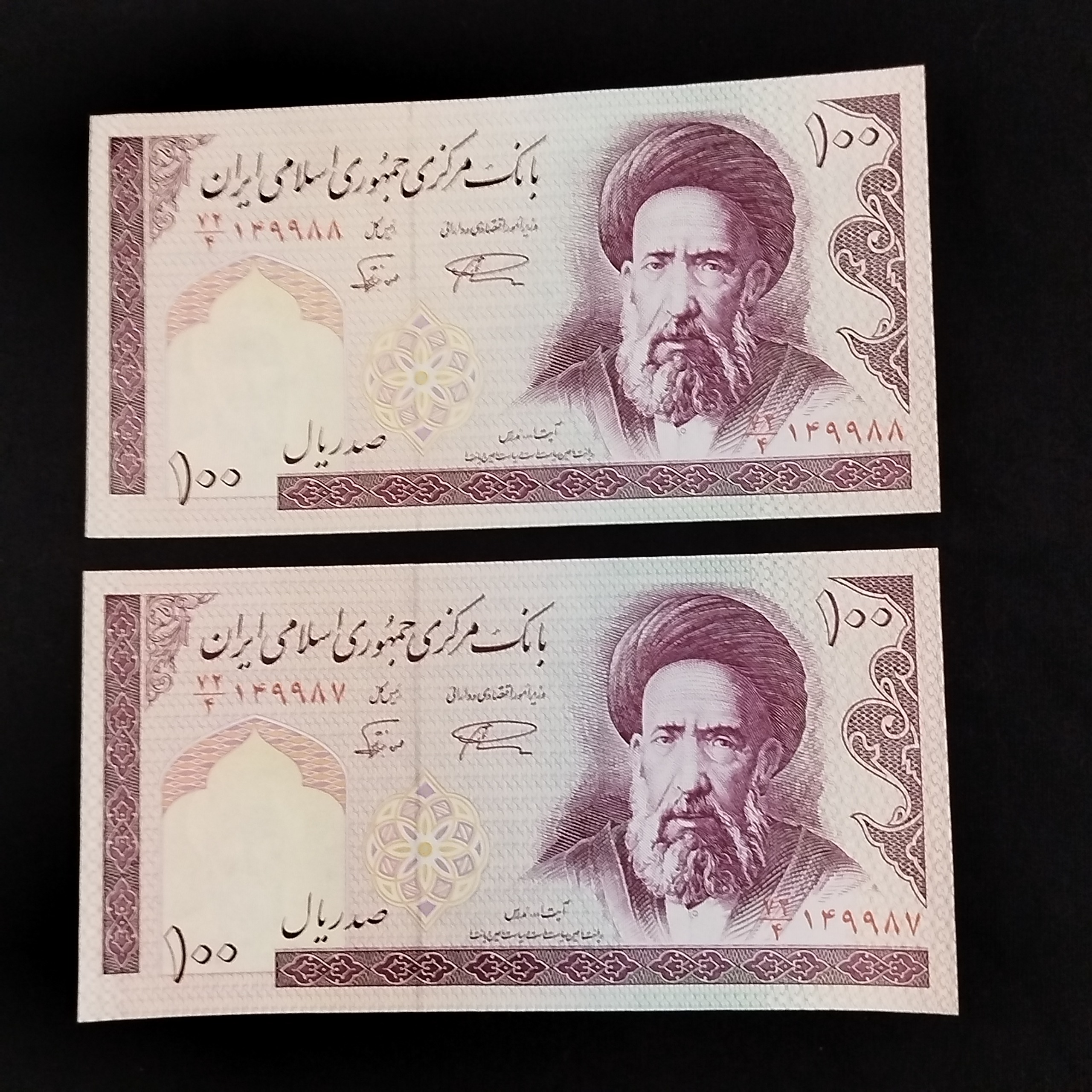 جفت اسکناس 100 ریالی نمازی نوربخش شماره ریز