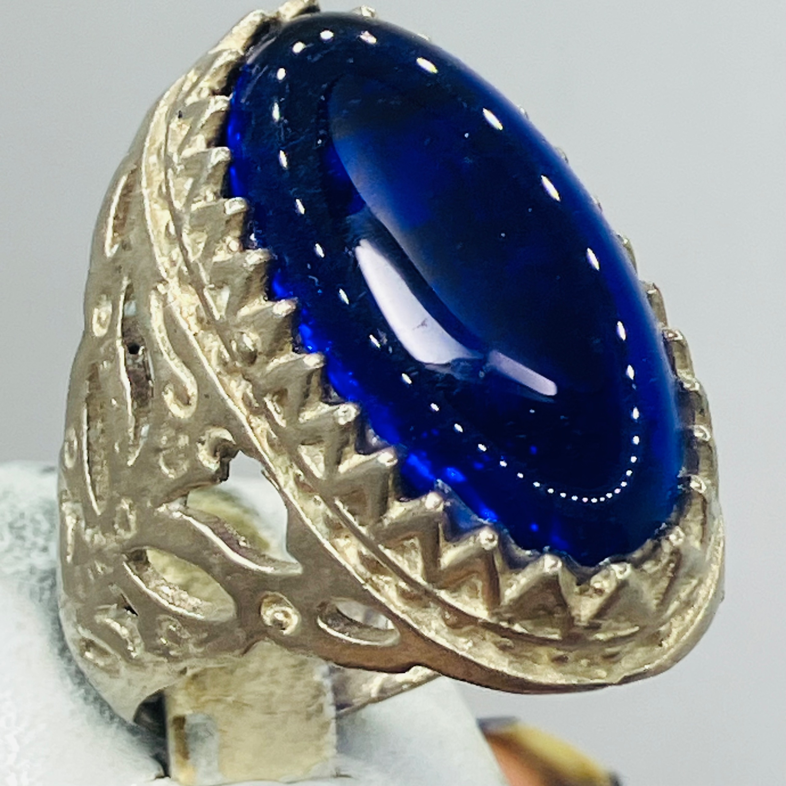 انگشتر یاقوت آبی زغالدار هندوستان معدنی