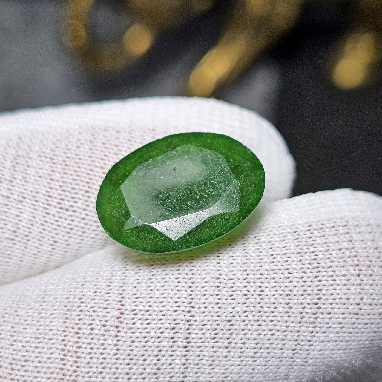 نگین سنگ جید زمردی معدنی تراش فست 36301