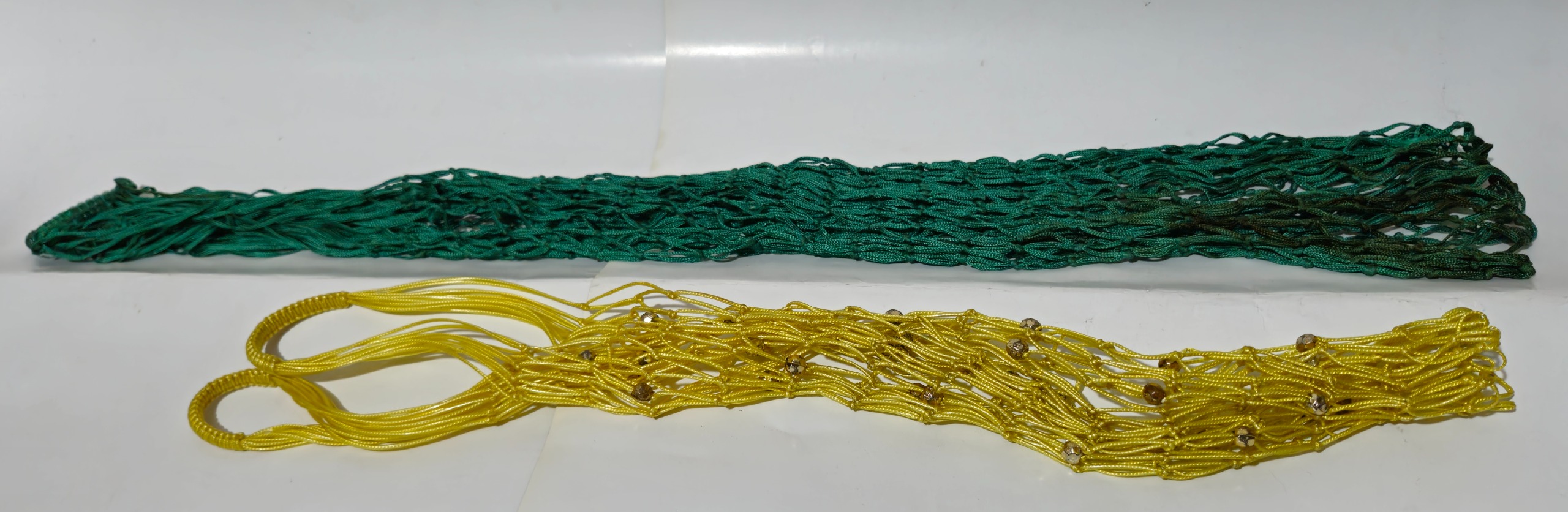 جنس زنبیل سبز نخ.ابعاد در حالت باز 70X47 سانتیمتر.قسمتای کمی از زنبیل تیره شده.مطابق باتصاویر میفروشم.