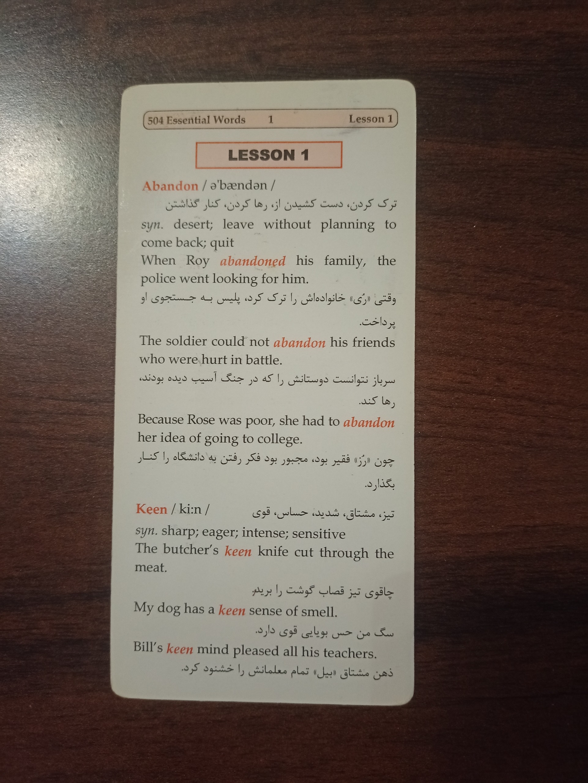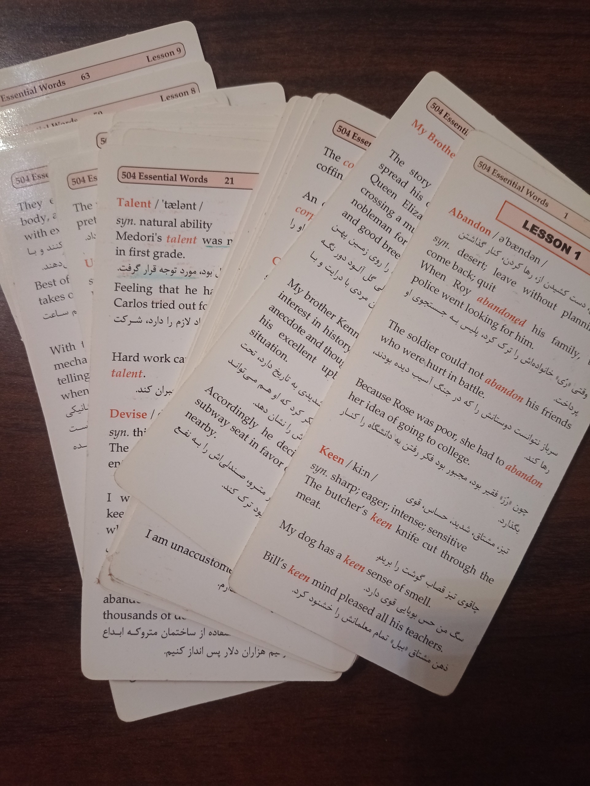 مجموعه فلش کارت 504 واژه کاملا ضروری با ترجمه فارسی.