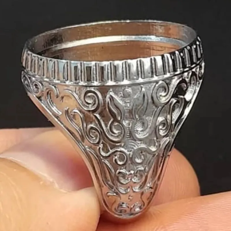 رکاب انگشتر مردانه جنس نقره عیار 860 عیار متوسط با آبکاری طلاسفید و  سایز نگین خور 24 در 18 میل  با سایز انگشت خور 57
