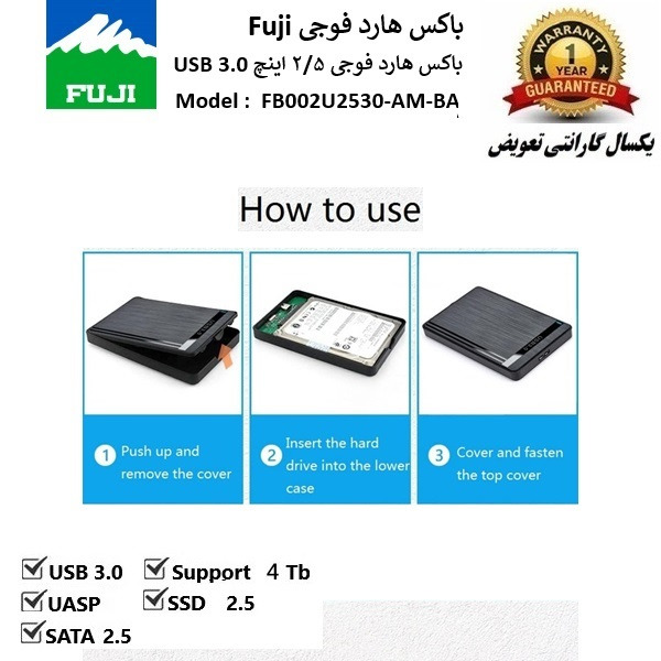باکس هارد فوجی 2.5 اینچ با USB 3.0 و پشتیبانی تا 4 ترابایت. سازگار با SSD/HDD. نصب آسان، سرعت بالا، با یک سال گارانتی تعویض.