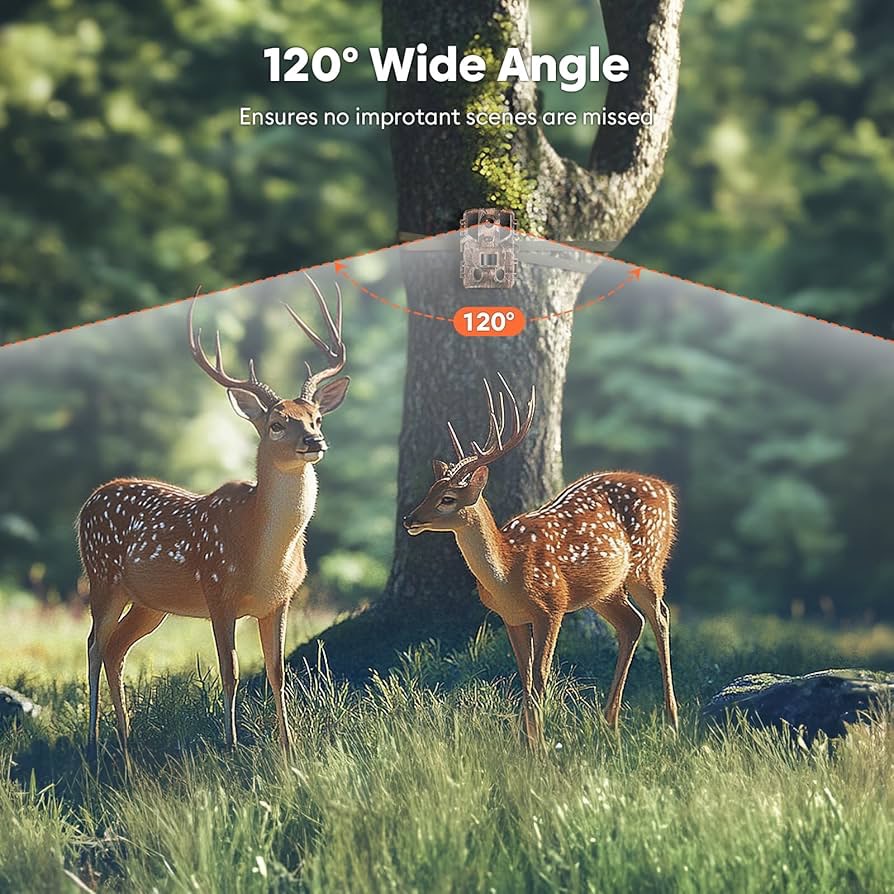 زاویه تشخیص 120 درجه و سرعت فعالسازی سریع: این دوربین حیات وحش وایفای دارای یک لنز زاویه باز 120 درجه با برد تشخیص 65 فوت (20 متر)، زمان فعالسازی سریع 0.2 ثانیه و عکسبرداری مداوم 5 فریم است که فعالسازی سریع هنگام عبور حیات وحش را تضمین میکند تا هیچ لحظه هیجانانگیزی را از دست ندهید.