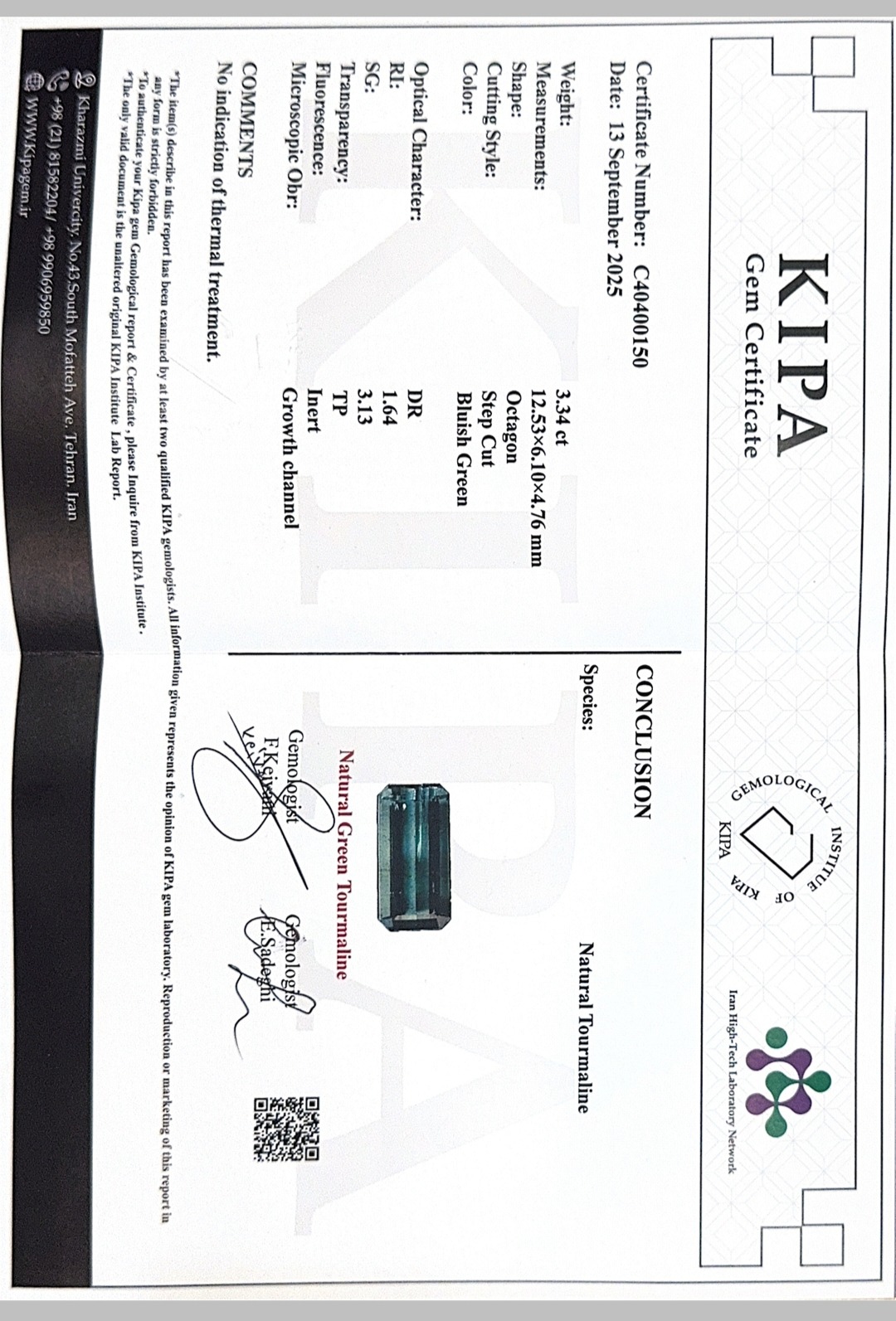 نگین سنگ تورمالین افغانستان همراه با سرتبفیکیت شرکت KIPA