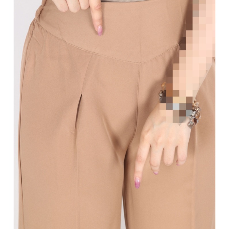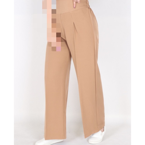 شلوار نیم بگ کرپ مازراتی پیله دار نسکافه ای
