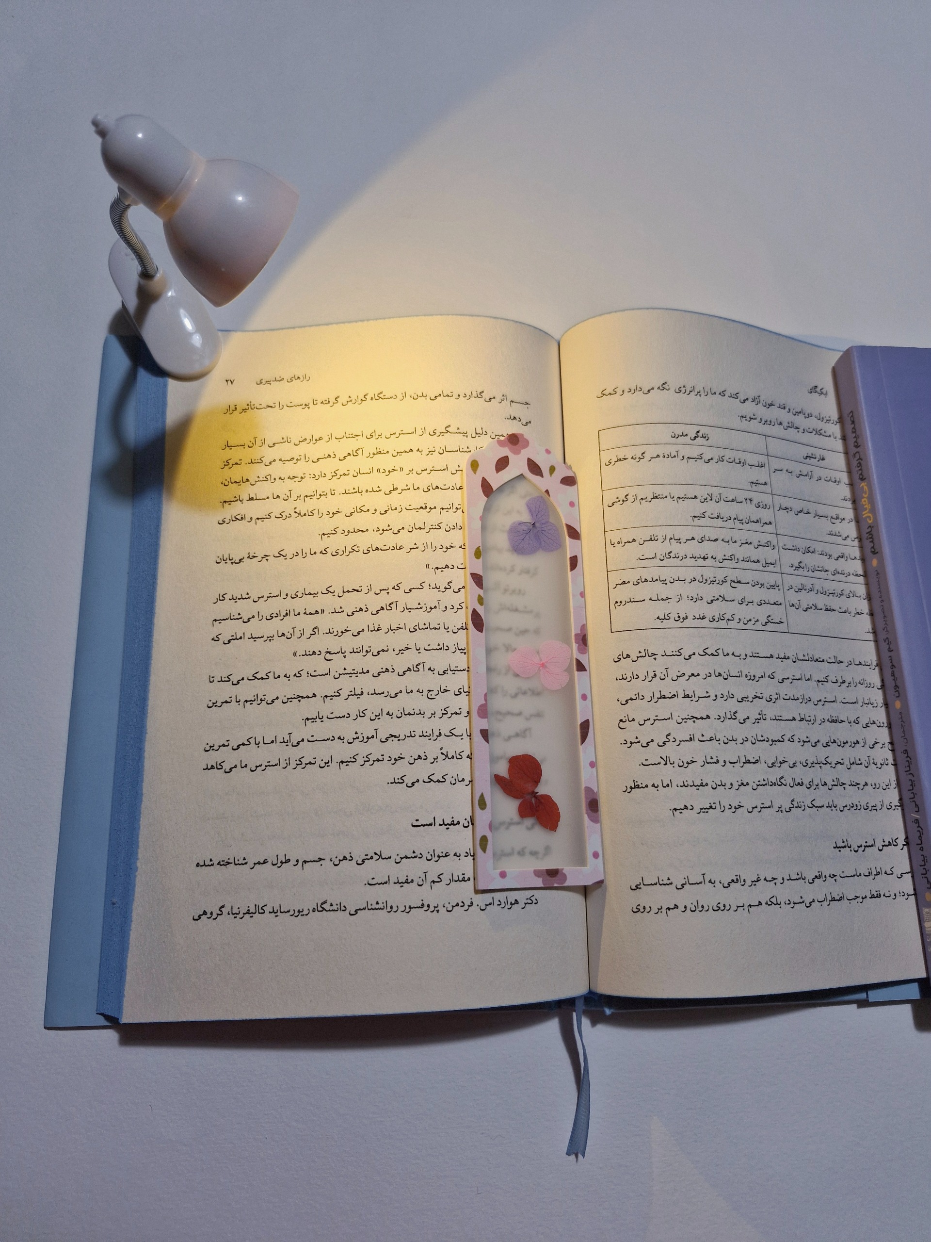 چراغ مطالعه گیره ای فانتزی کوچک که گیره چراغک آن به کتاب وصل میشود