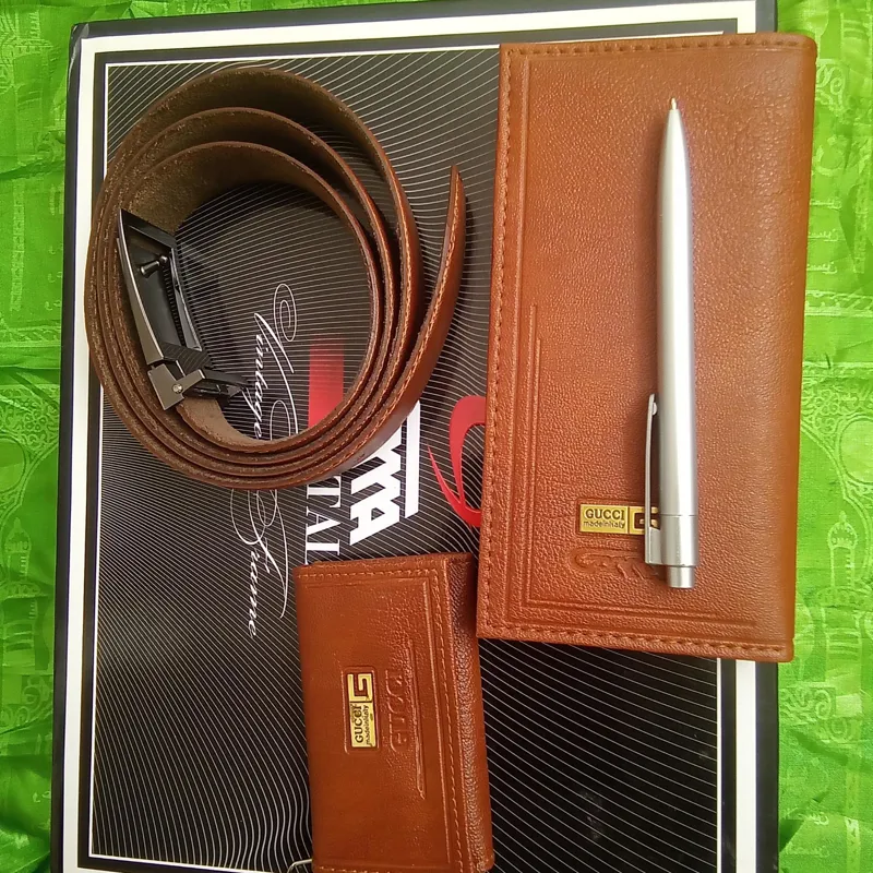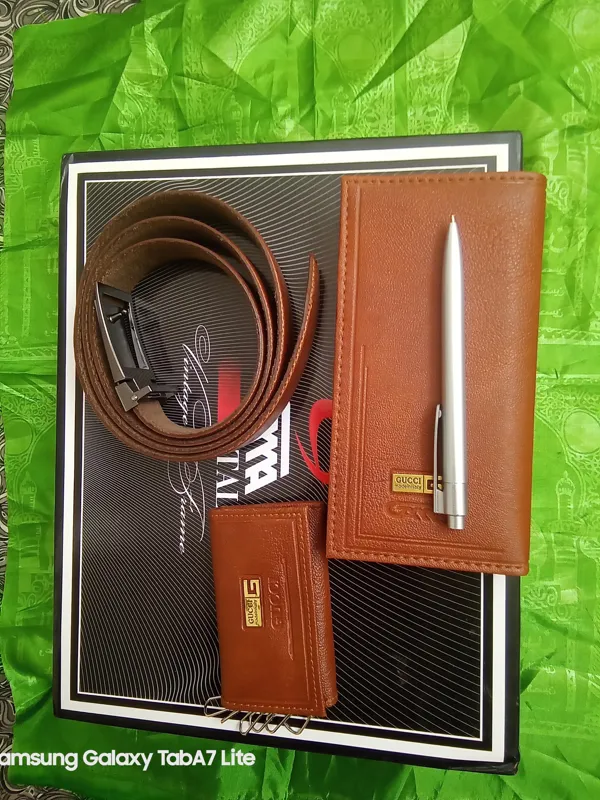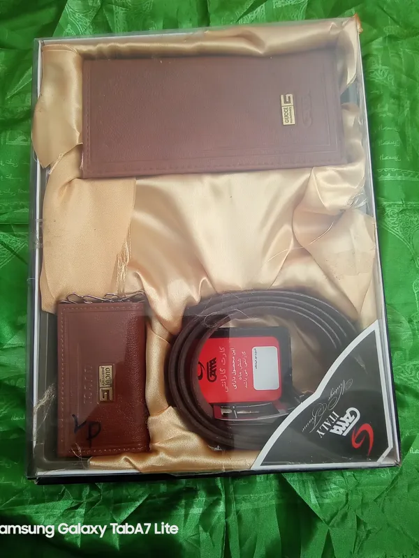 ست کیف پول وجاکلیدی وکمربند چرم وخودکارخارجی