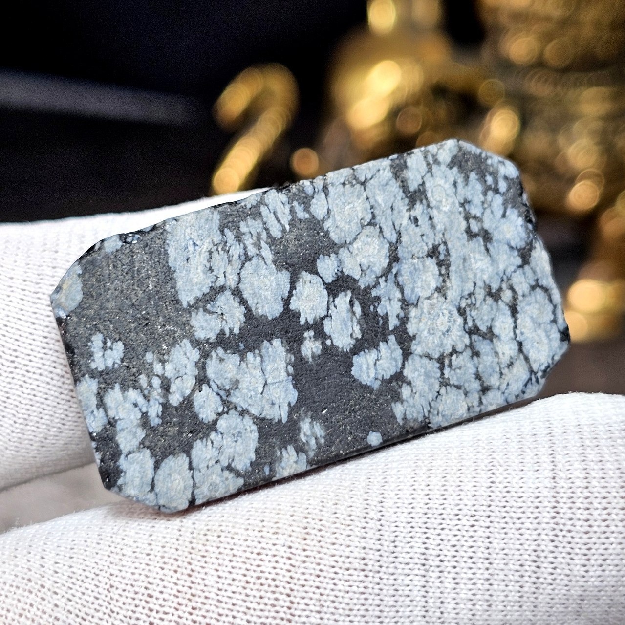 نگین درشت سنگ طبیعی ابسیدین لکه برفی معدنی تراش فست