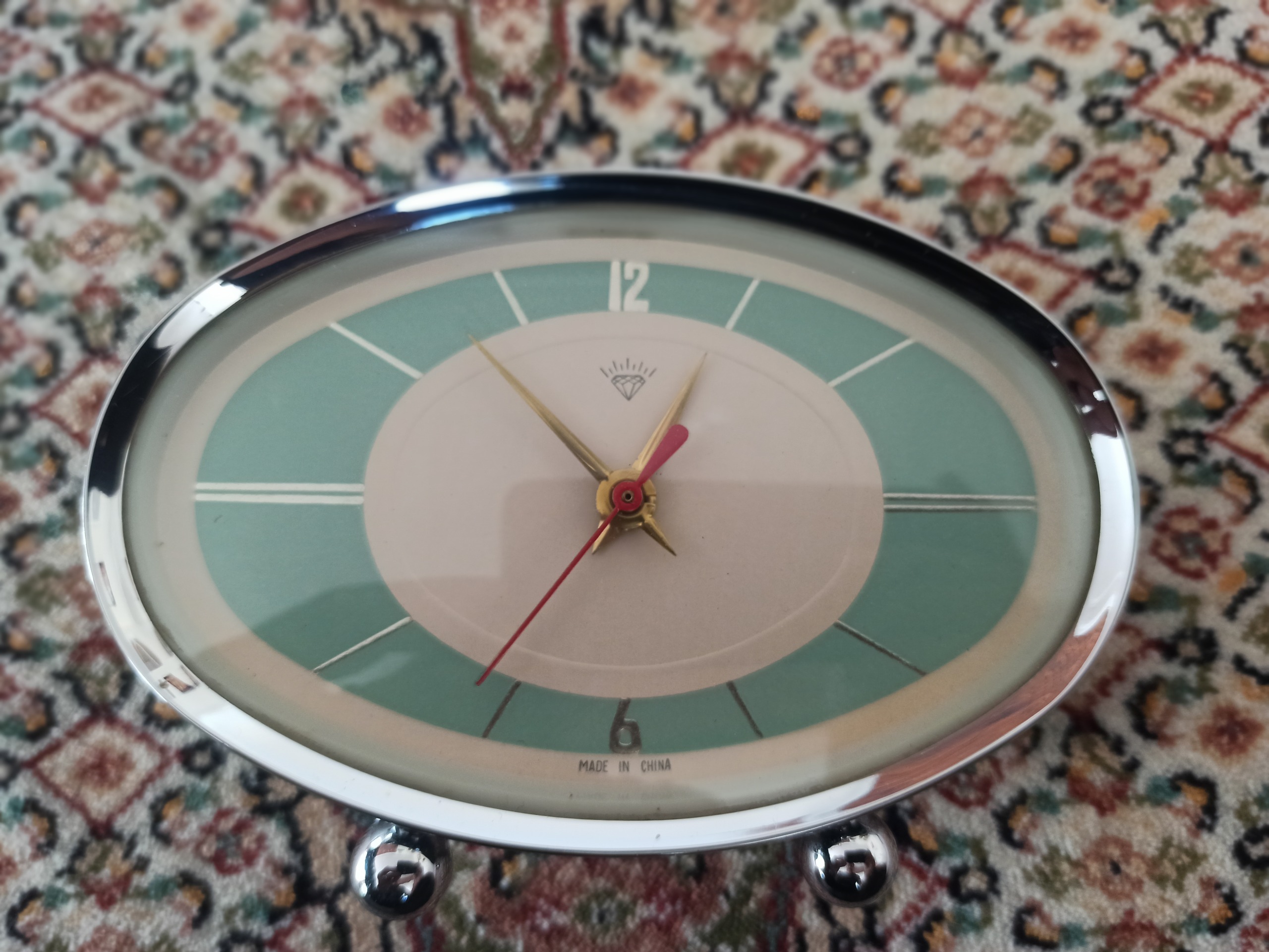 ساعت رومیزی قدیمی کلکسینی . ساخت چین الماس نشان.این نوع ساعتها سری اول بودن اصلاً زنگ ندارن.سالم بدون شکستگی یا ترک.کارکرد دقیق.