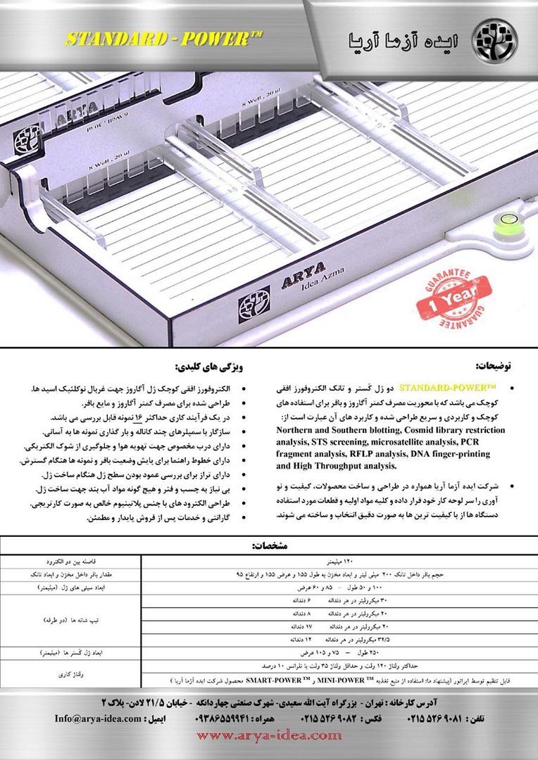 - طراحی STANDARD - POWER توسط شرکت ایده آزما آریا حاصل تجربه استفاده از چندین مدل مختلف الکتروفورز در بازار و با در نظر گرفتن نکات مثبت و رفع معایت آن ها که حاصل تجربه دانشمندان مشاور شرکت می باشد به عمل آمده است.