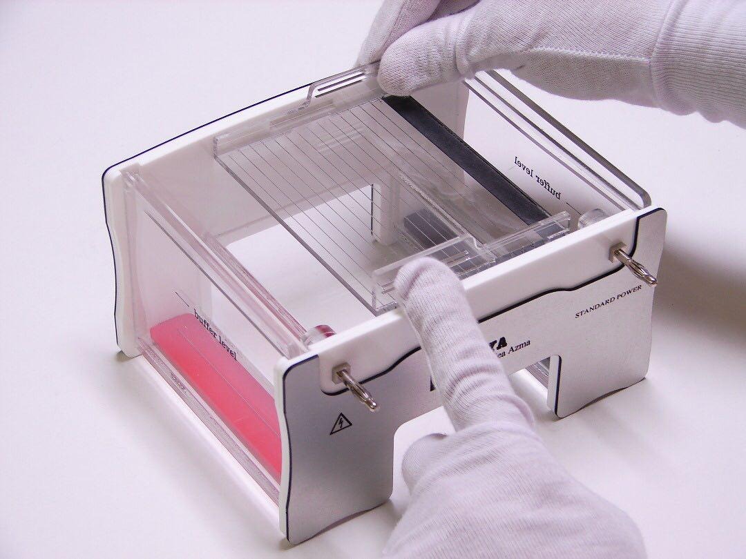 - یک الکتروفورز افقی کوچک ژل آگاروز جهت غربال نوکلئیک اسید ها.