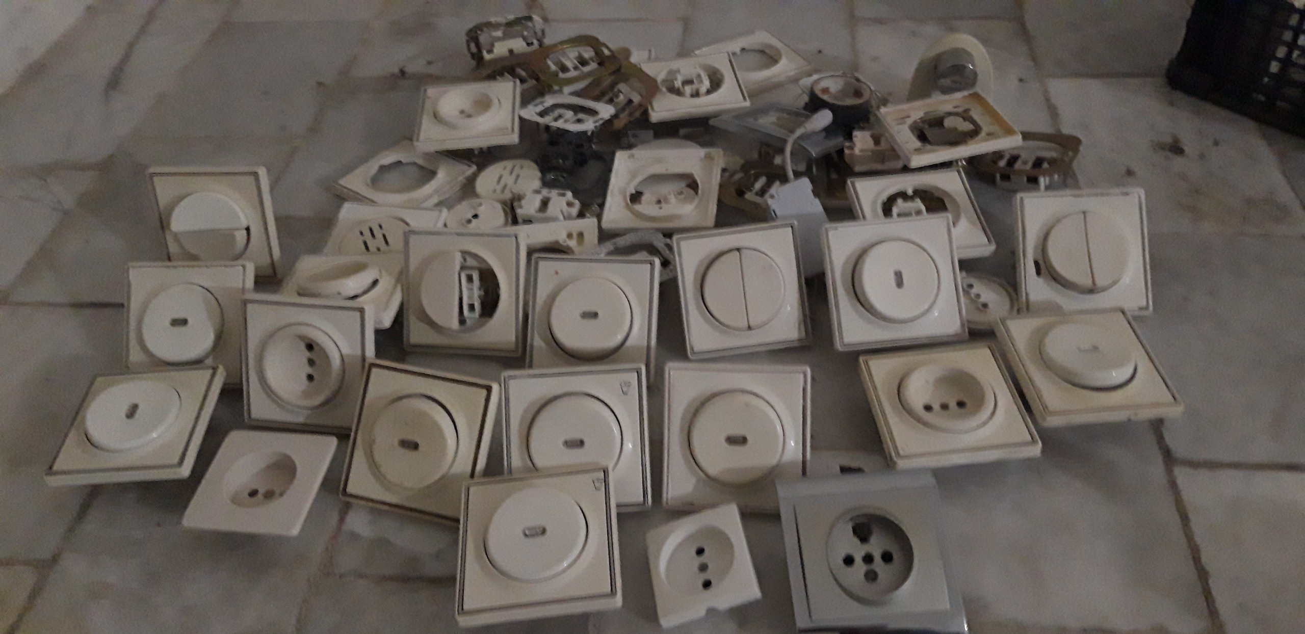 تعدادی کلید و پریز برق و پریز تلفن و زنگ آپارتمان و گلید زنگ تعدادی اماده و مقداری کلید و پریز قاب و مغزی از هم جدا مطابق تصویر تقدیم میشه