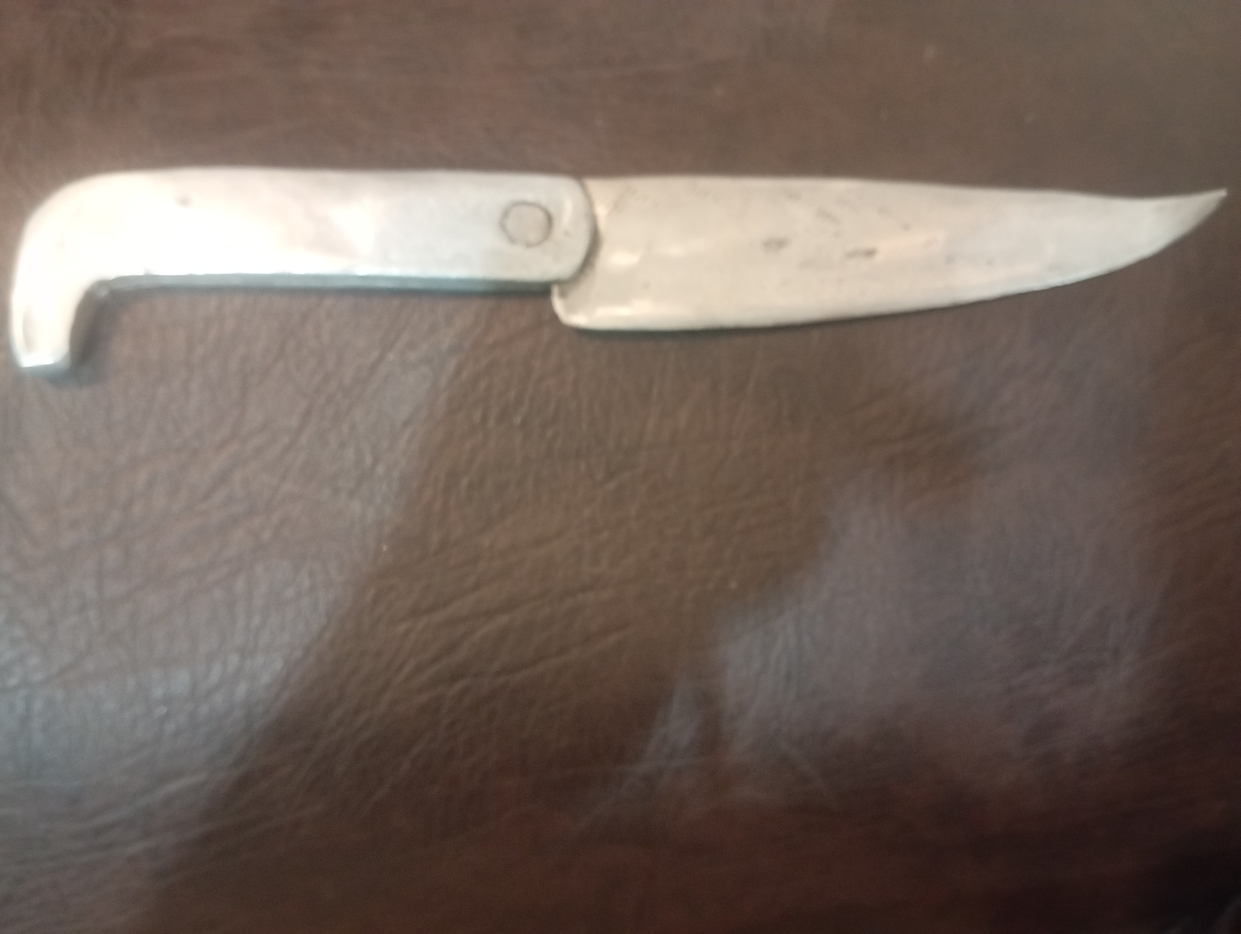 اگر کسی چاقوشناس باشه و با کارد سلاخی کار کرده باشه یدونه این چاقو چی هست مخصوصاً نوک چاقو ما متاسفانه صاحب قبلی به جای اینکه با سنباده نرم او را تمیز کنه بنده خدا با فرچه سنگ رومیزی تمیزش کرده تا حدی که نام سازنده این چاقو را پاک کرده فقط یه آثار خیلی کمی که معلوم نیست کیه روش مونده حالا بازم خوبه به خود صفحه سنگ نگرفته که دیگه اون موقع اصلاً به کار نمیومد