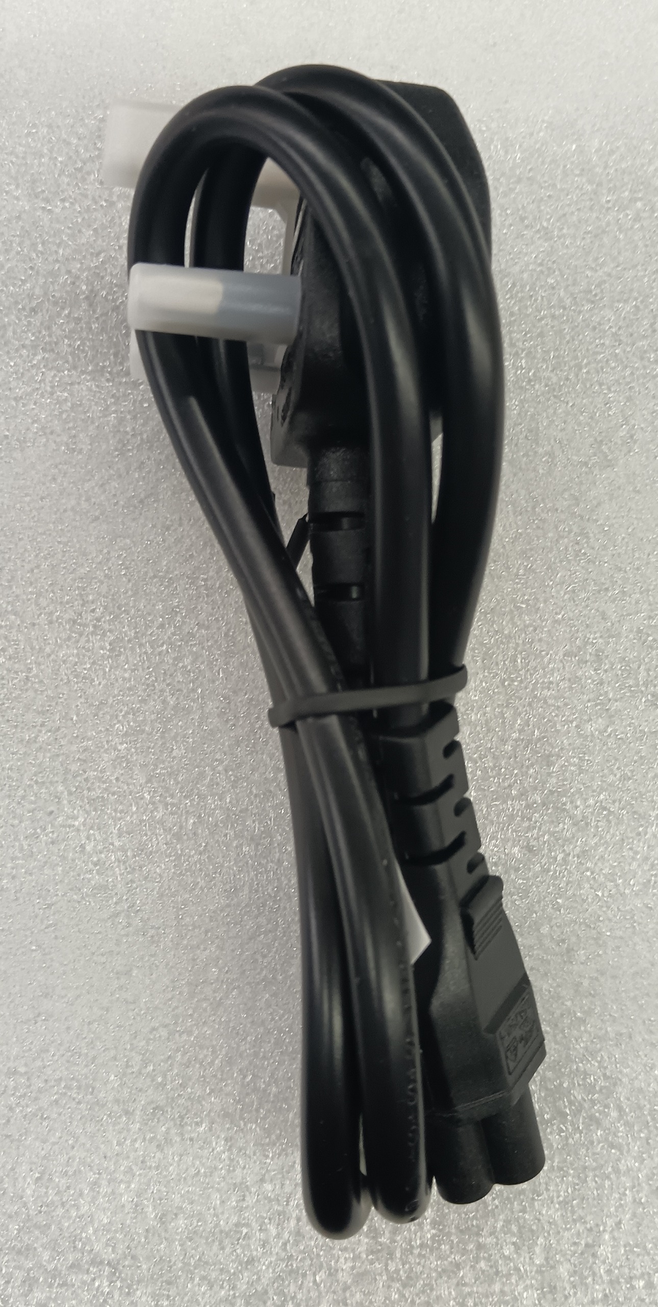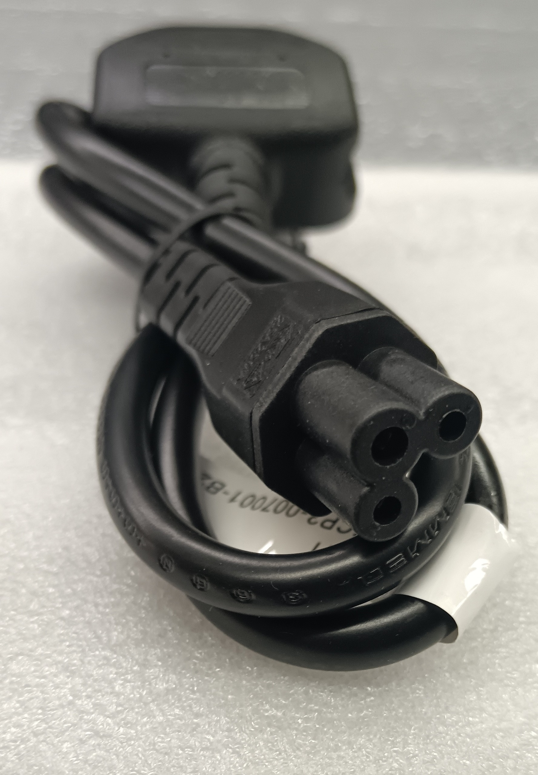یعنی در یک سمت دوشاخه 3 پین بریتانیایی (UK plug type G) و در سمت دیگر سوکت 3 پین C5 موسوم به "Mickey Mouse" دارد.