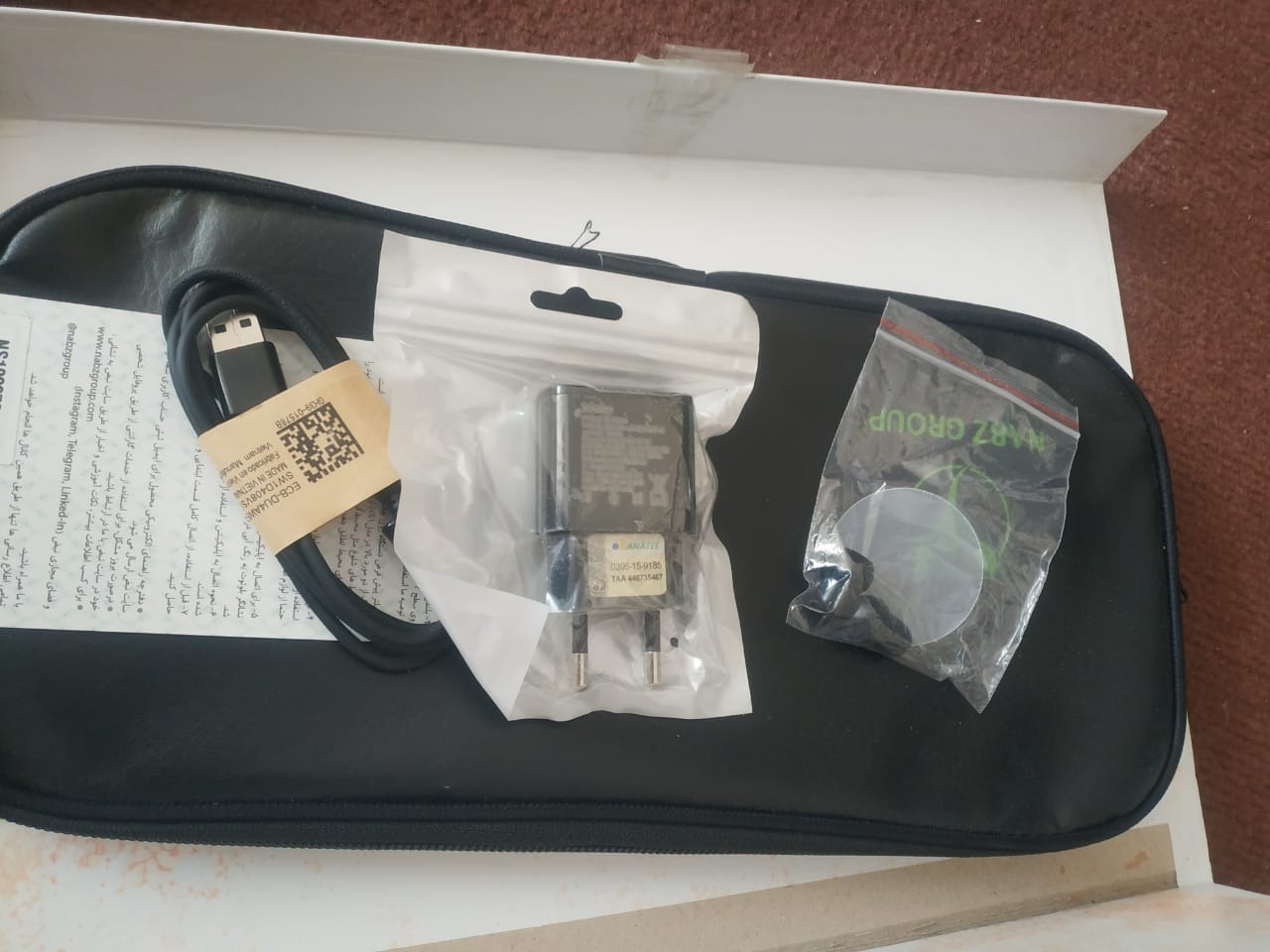 - شارژر و کابل شارژ - کیف چرم مخصوص حمل گوشی