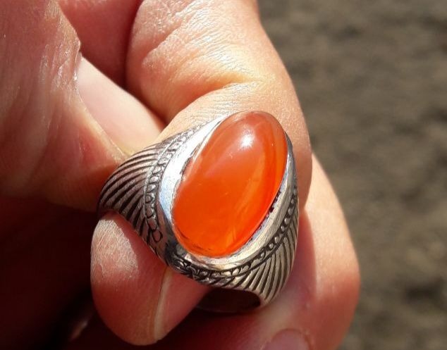 عقیق یمنی کهنه پرتقالی بسیار زیبا