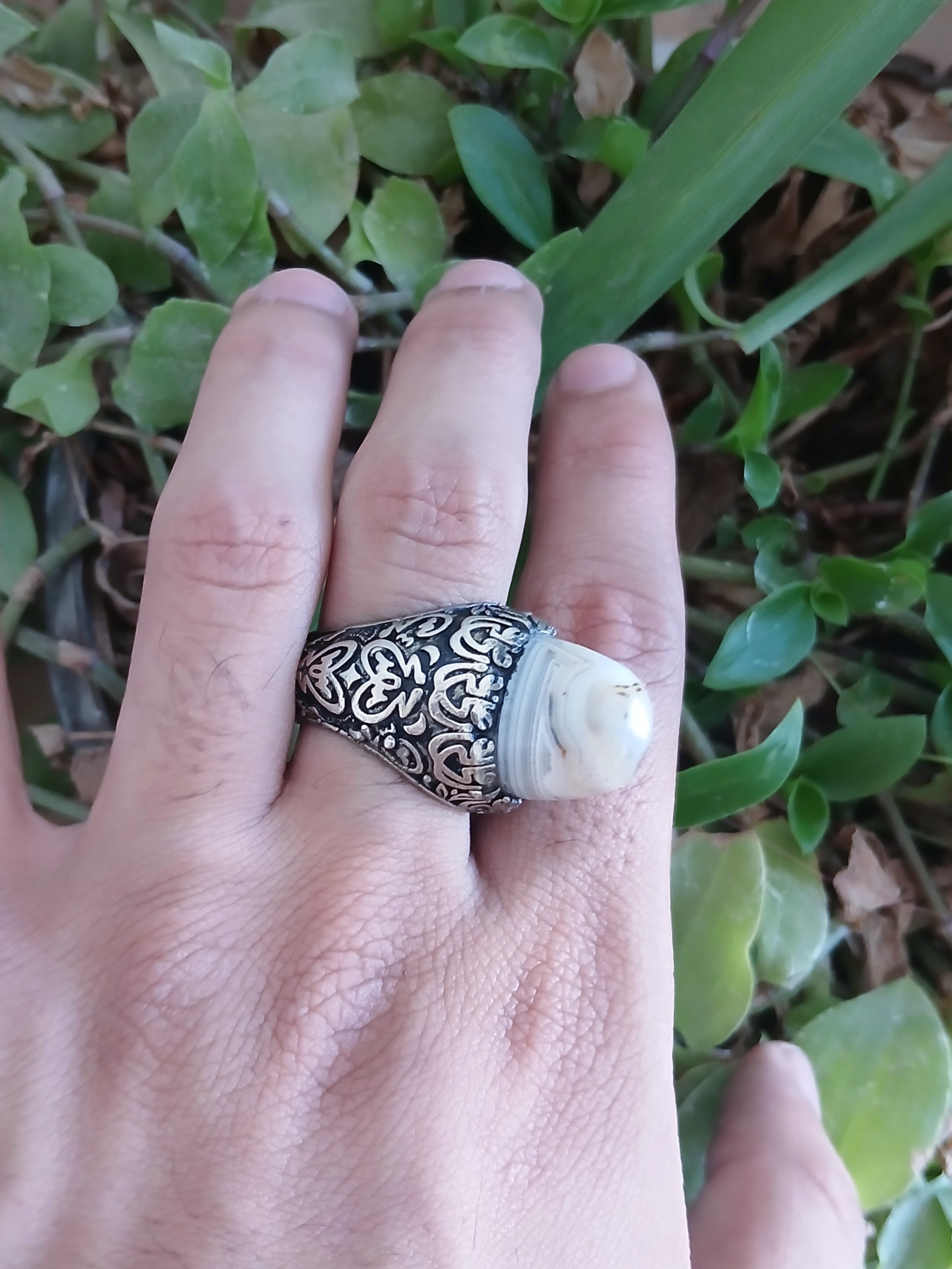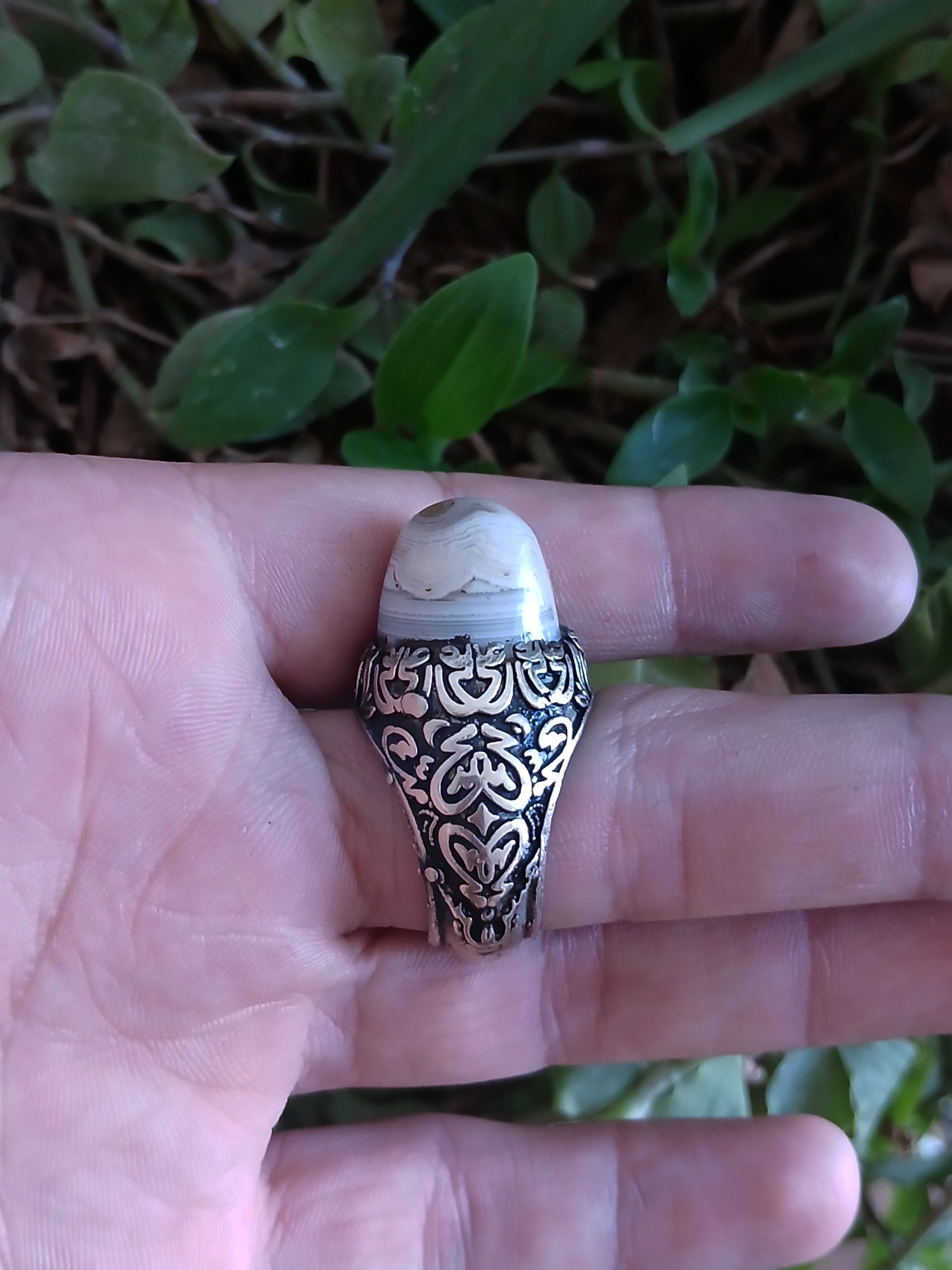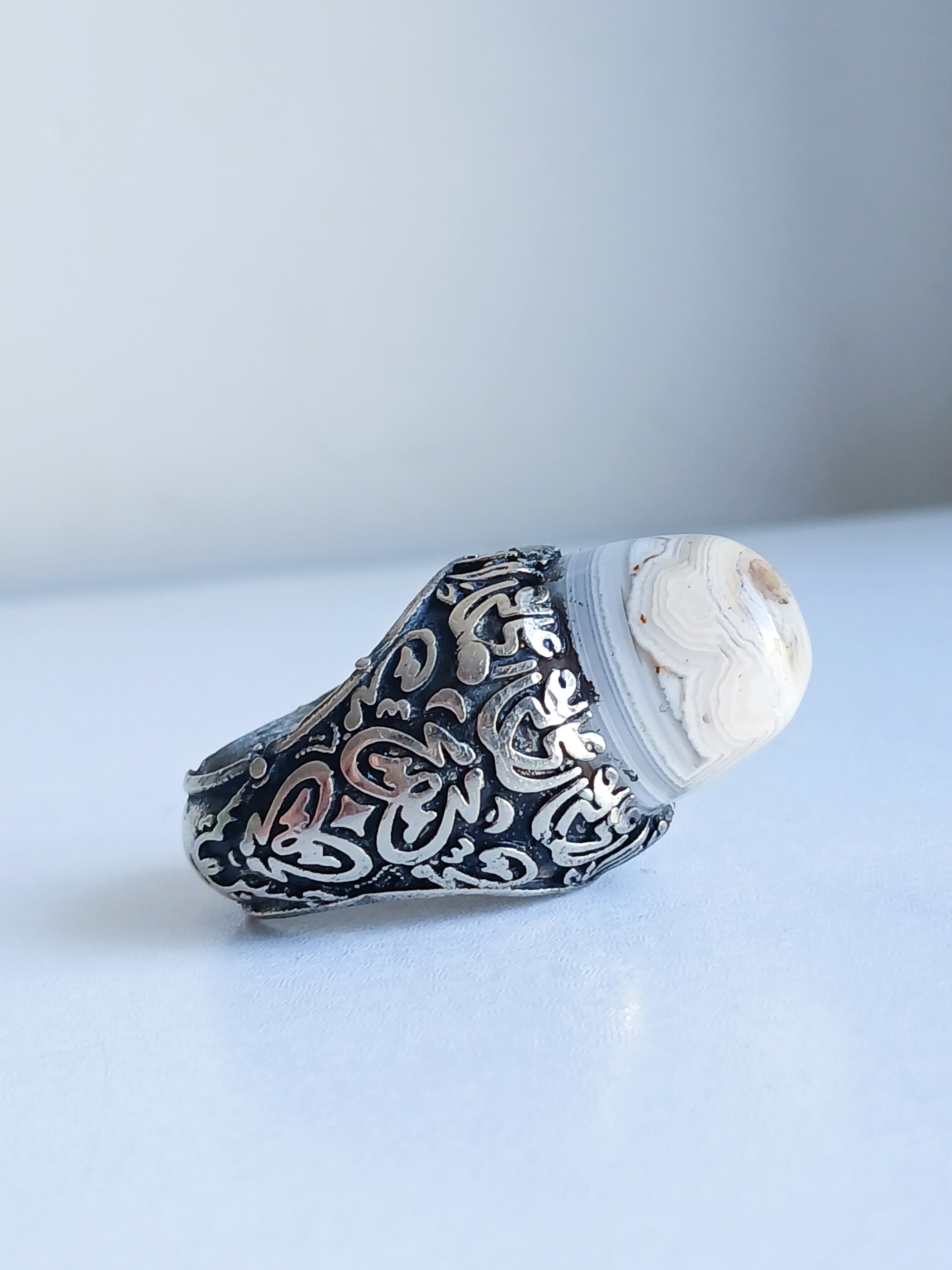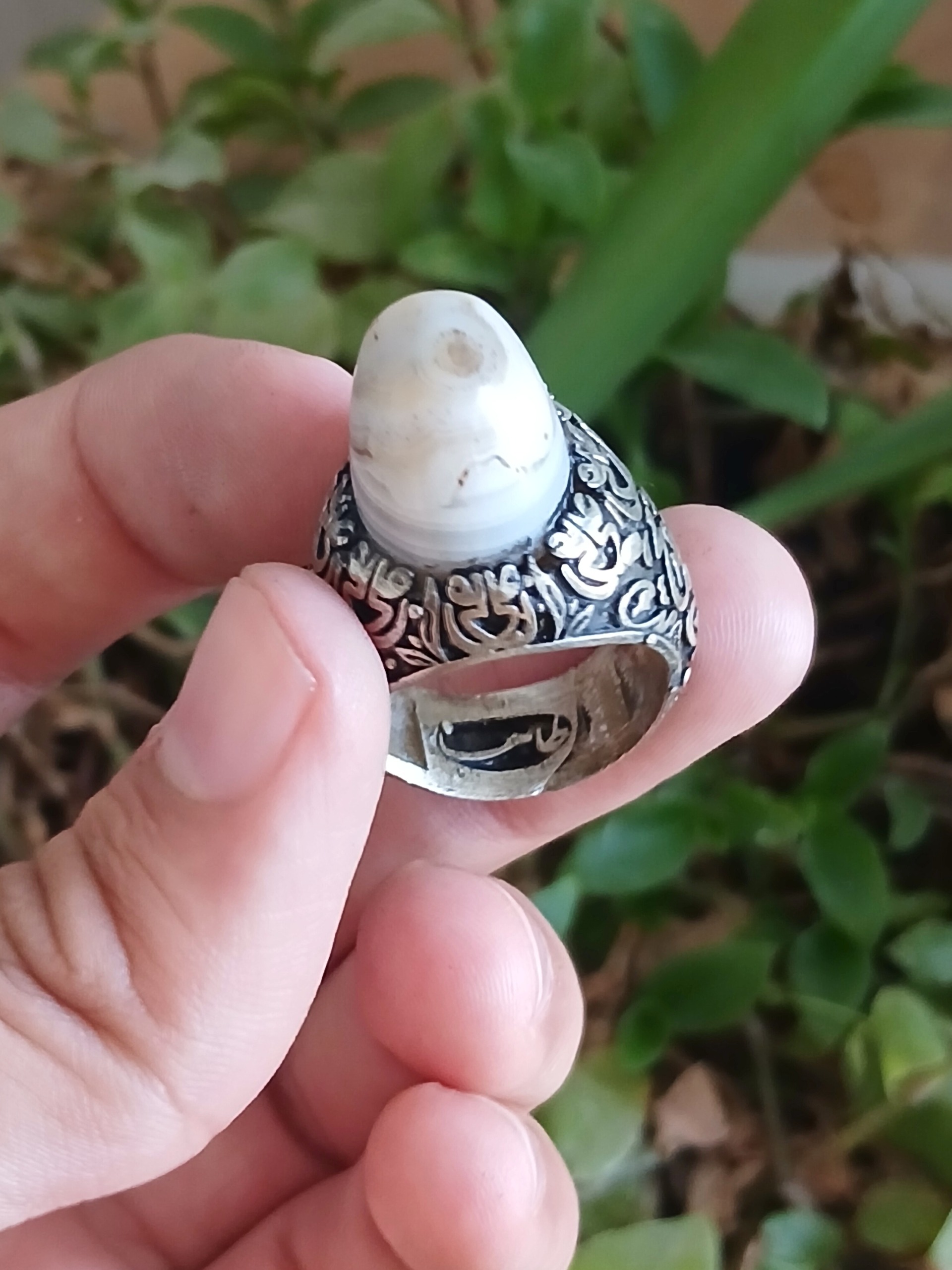 انگشتر عقیق کله قندی رکاب علی علی ارتفاع دار