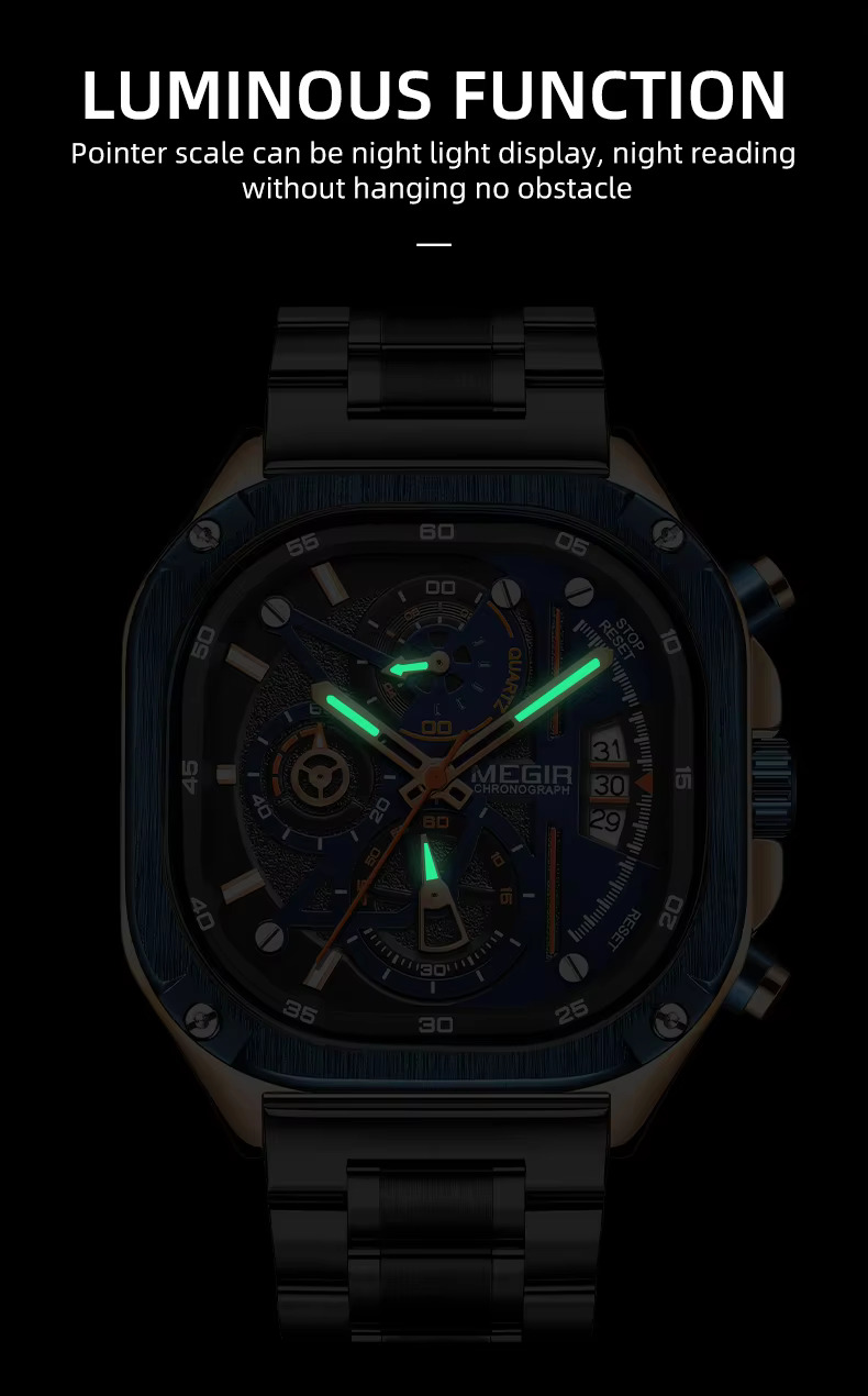 ساعت استیل مردانه سه موتور برند مگیر مدل 2217