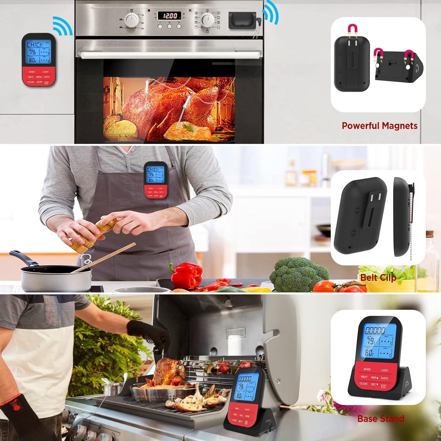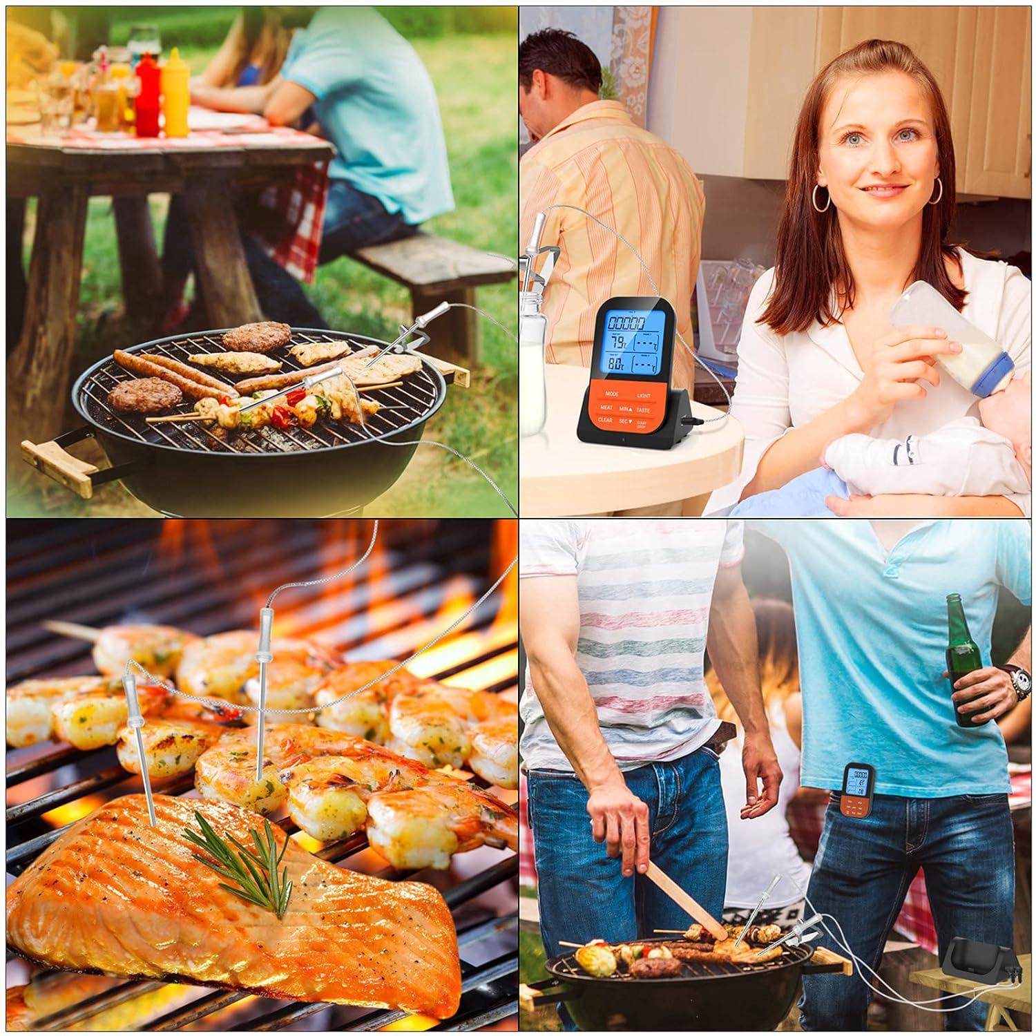 دارای تایمر با عملکرد هشدار (گیرنده بوق می دهد و چشمک می زند): تنظیم تایمر بر اساس زمان و دما با این دماسنج آشپزخانه امکان پذیر است تا گوشت شما همیشه به خوبی کنترل شود و همیشه در نقطه پخت مطلوب باشد. گیرنده دماسنج برشته دارای یک گیره تسمه و یک پایه یکپارچه است، فرستنده را می توان توسط یک نگهدارنده سیم قابل جابجایی تنظیم یا آویزان کرد.