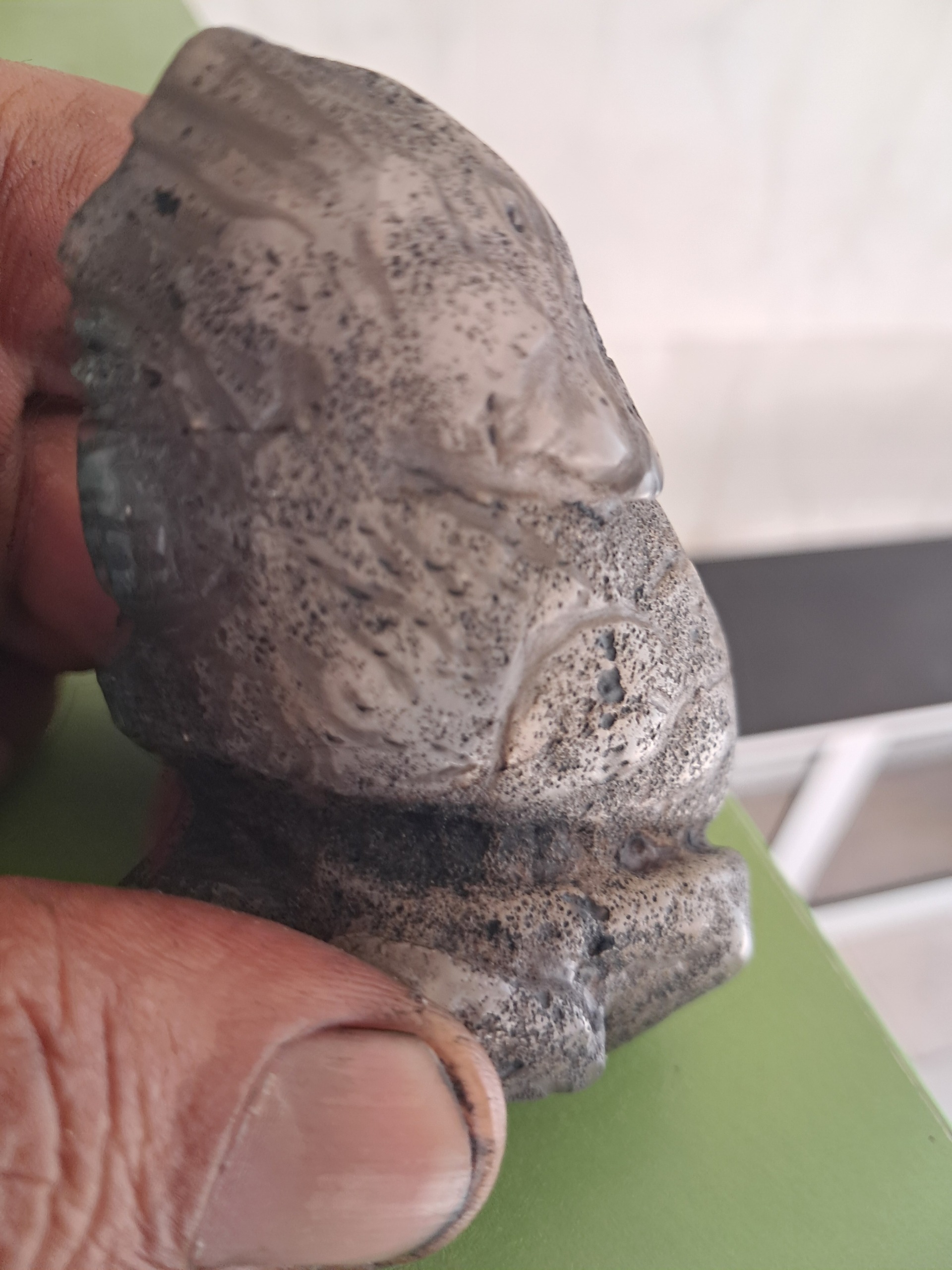 سنگ حکاکی شده بسیار کهنه و قدیمی از جنس عقیق. در ابعاد 10 در 7 سانت با وزن 180 گرم . دارایه 3 رخ حکاکی شده انسان در 2 طرف و 2 پرنده شکاری. کلکسیونی