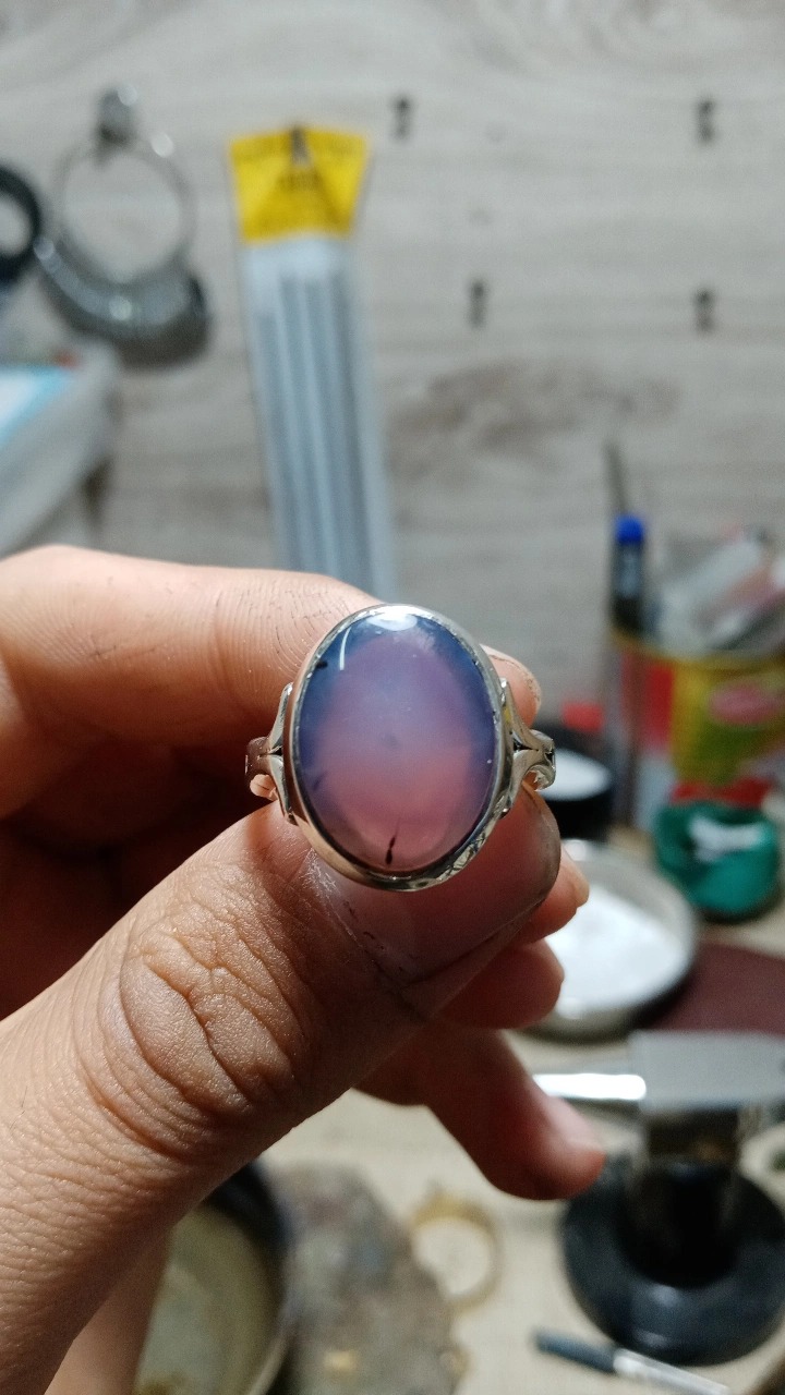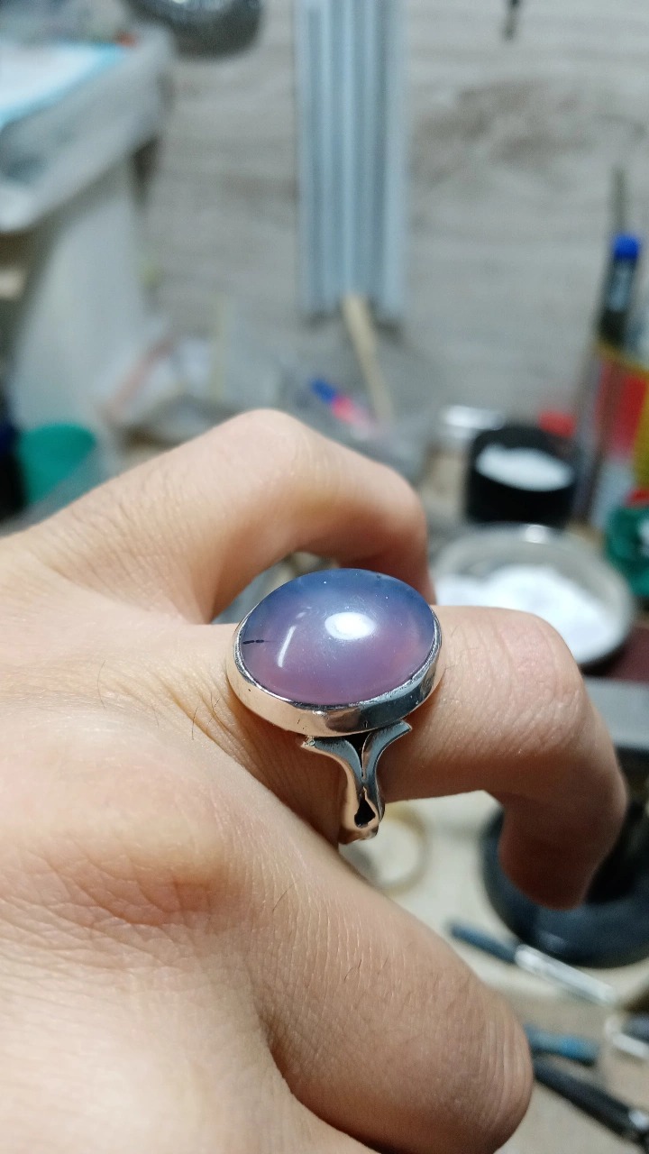 رکاب دست ساز مدل صفوی ، سنگ عقیق مابین یاسی و سوسنی