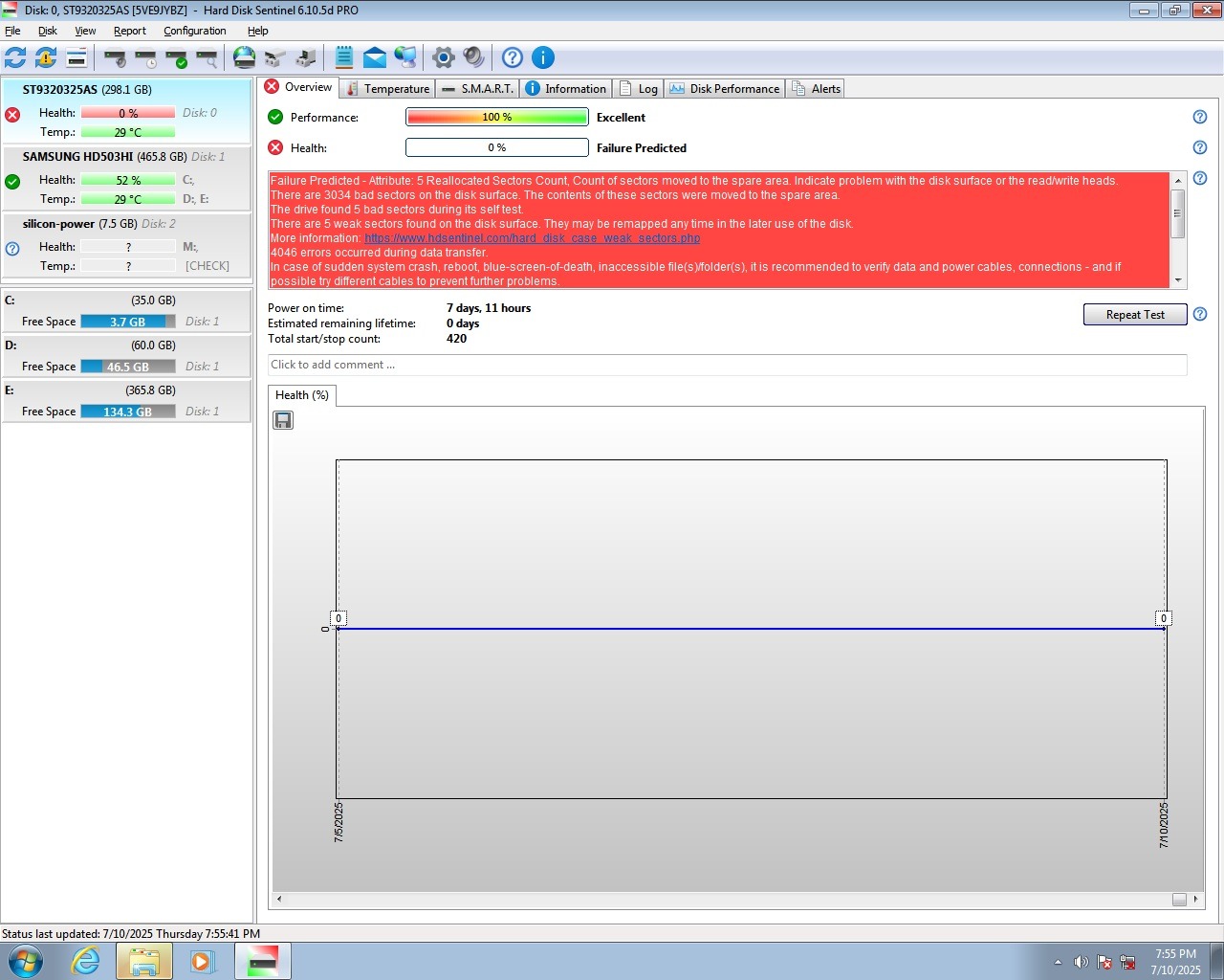 هارد لپ تاپ Seagate ST9320325AS 320GB معیوب