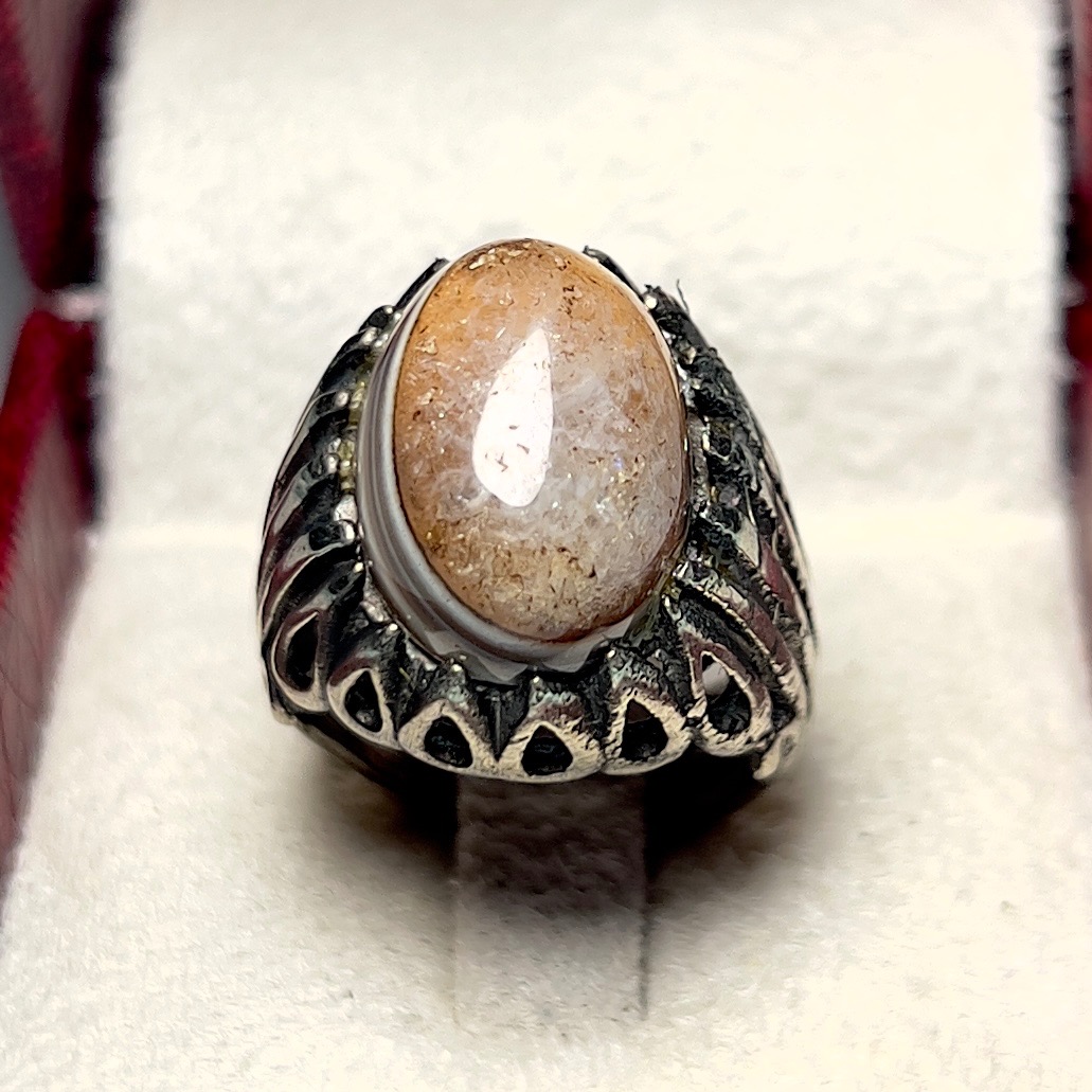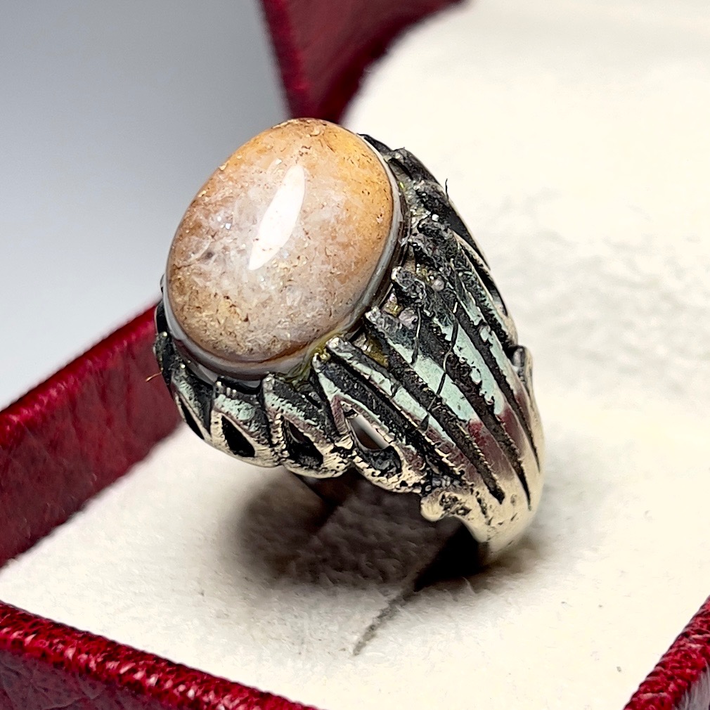 انگشتر باباقوری شنی رگه دار خاص کلکسیونی
