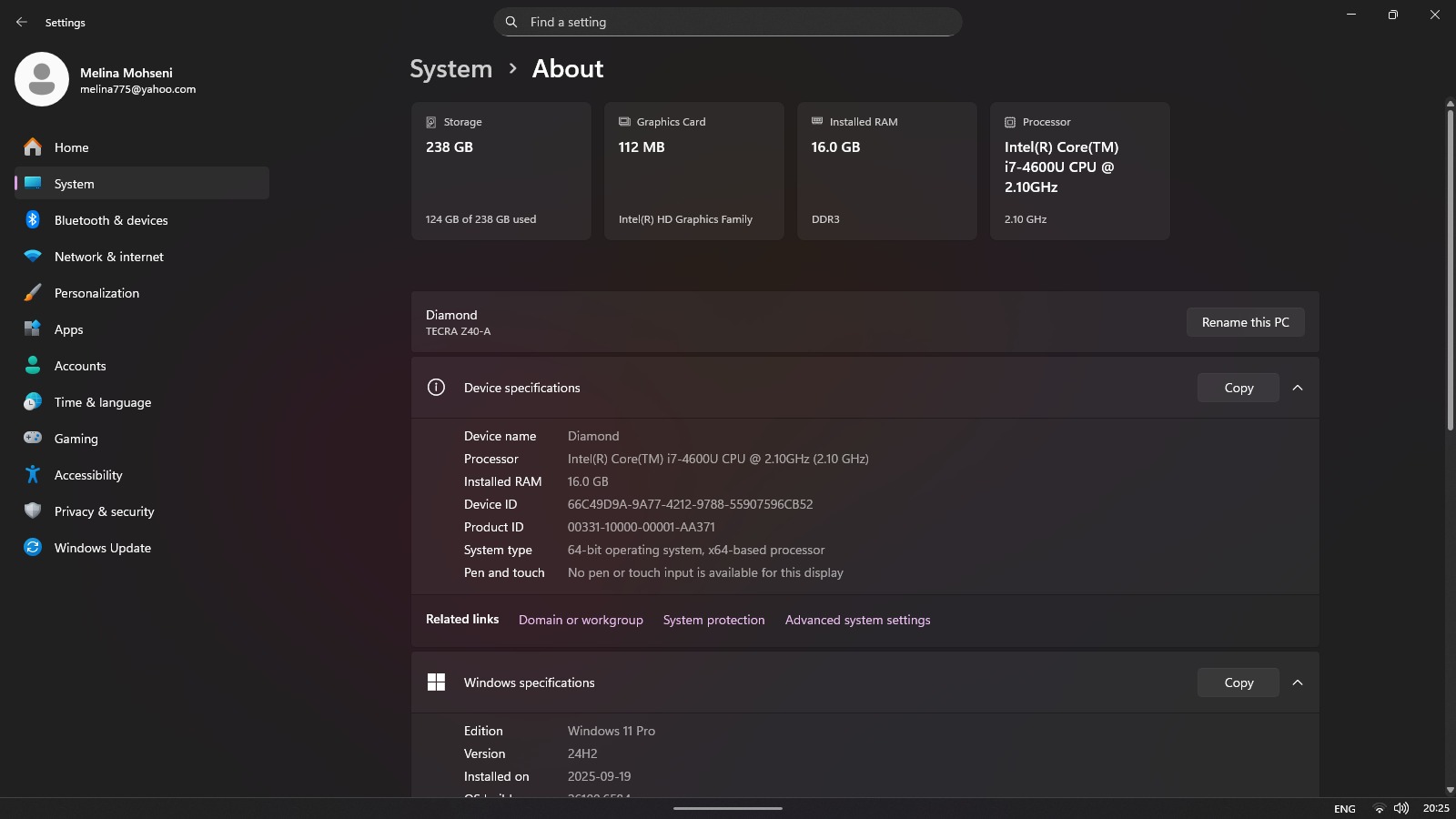 - پردازنده : Intel Core i7 4600U 2.1GHZ-4M cache