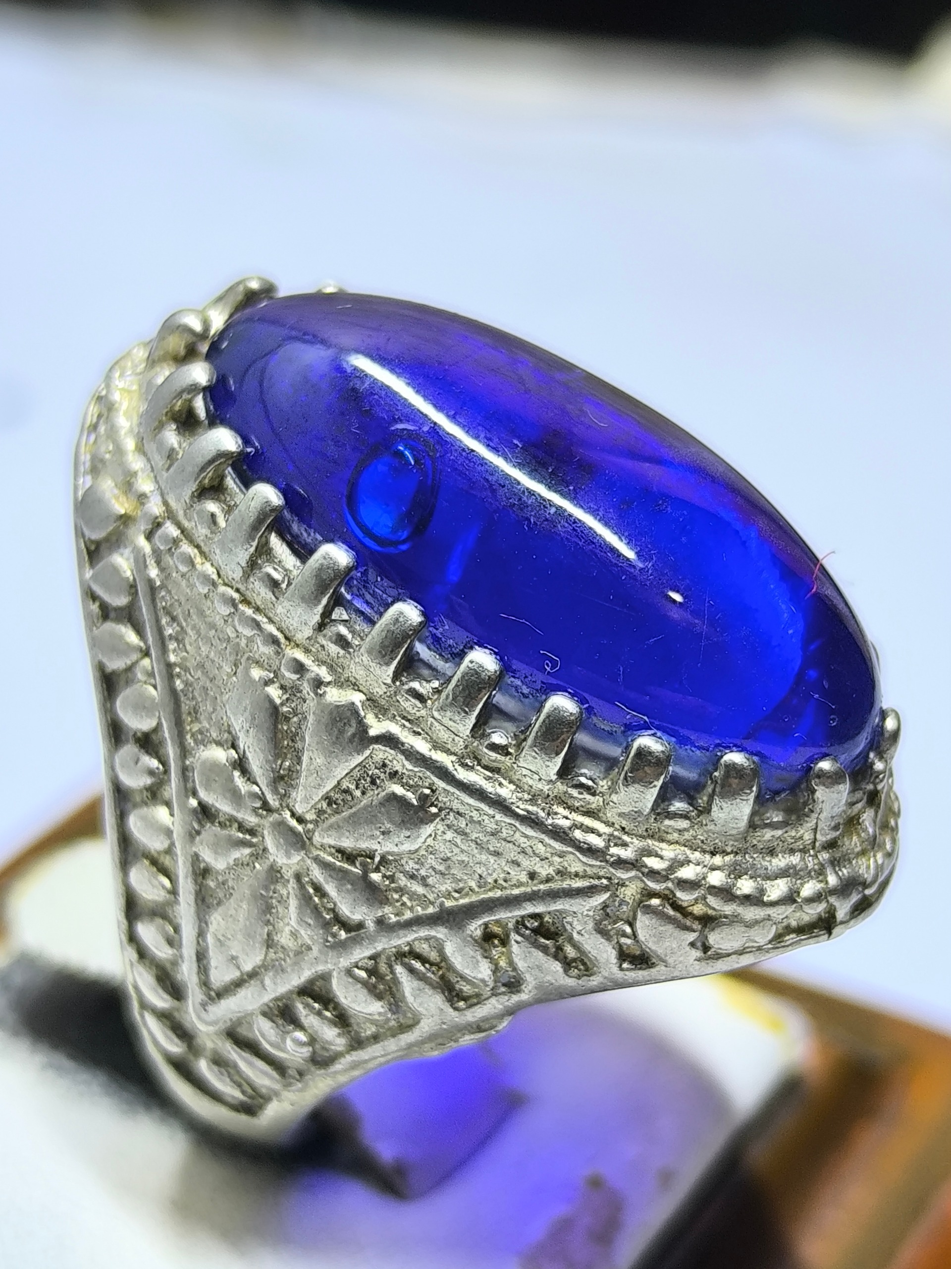انگشتر فوقالعاده زیبا و بینظیر لعل آبی طبیعی