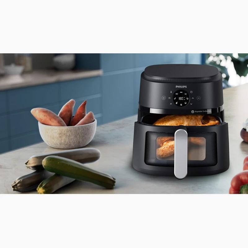 طراحی منحصربهفرد برای پخت یکنواخت حتی بدون برگرداندن غذا / کاهش مصرف روغن تا 90% هنگام پخت غذا/ کاهش مصرف انرژی تا 70% / دارای قسمت شیشهای بر روی محفظه برای دیدن وضعیت غذای در حال پخت / 13 حالت مختلف طبخ شامل برشته کردن، خشک کردن میوه