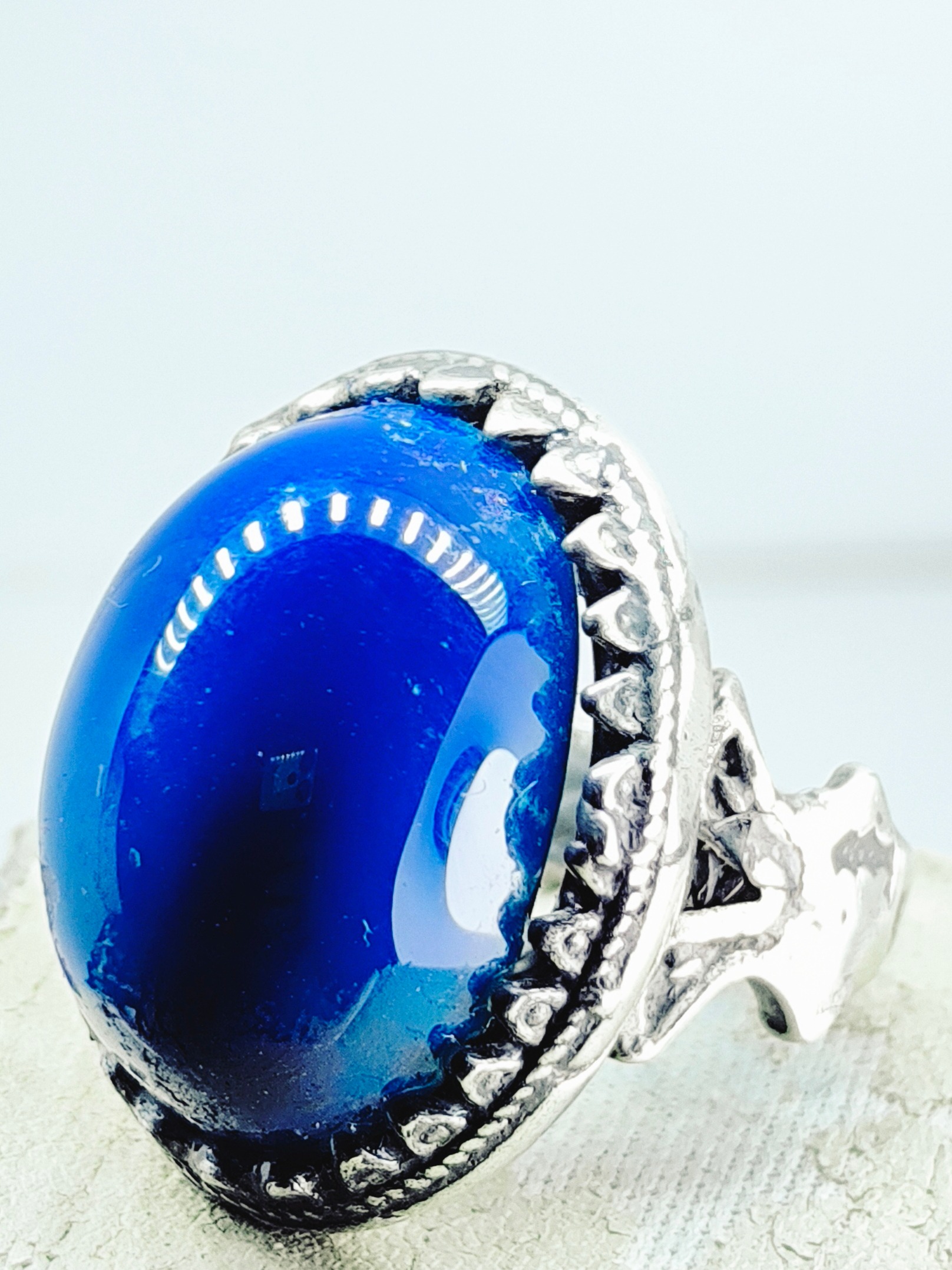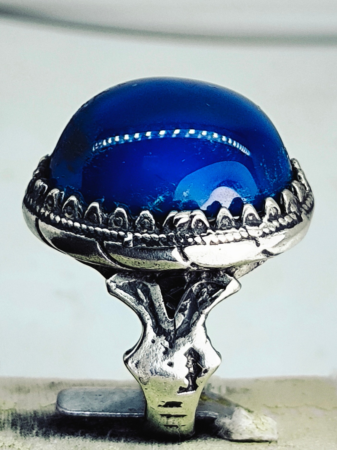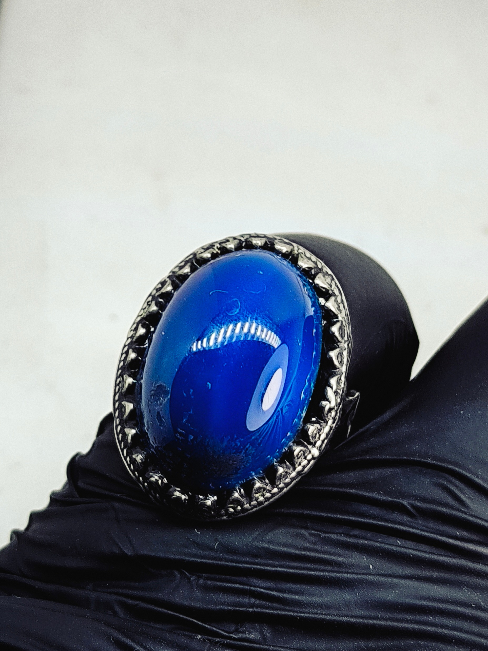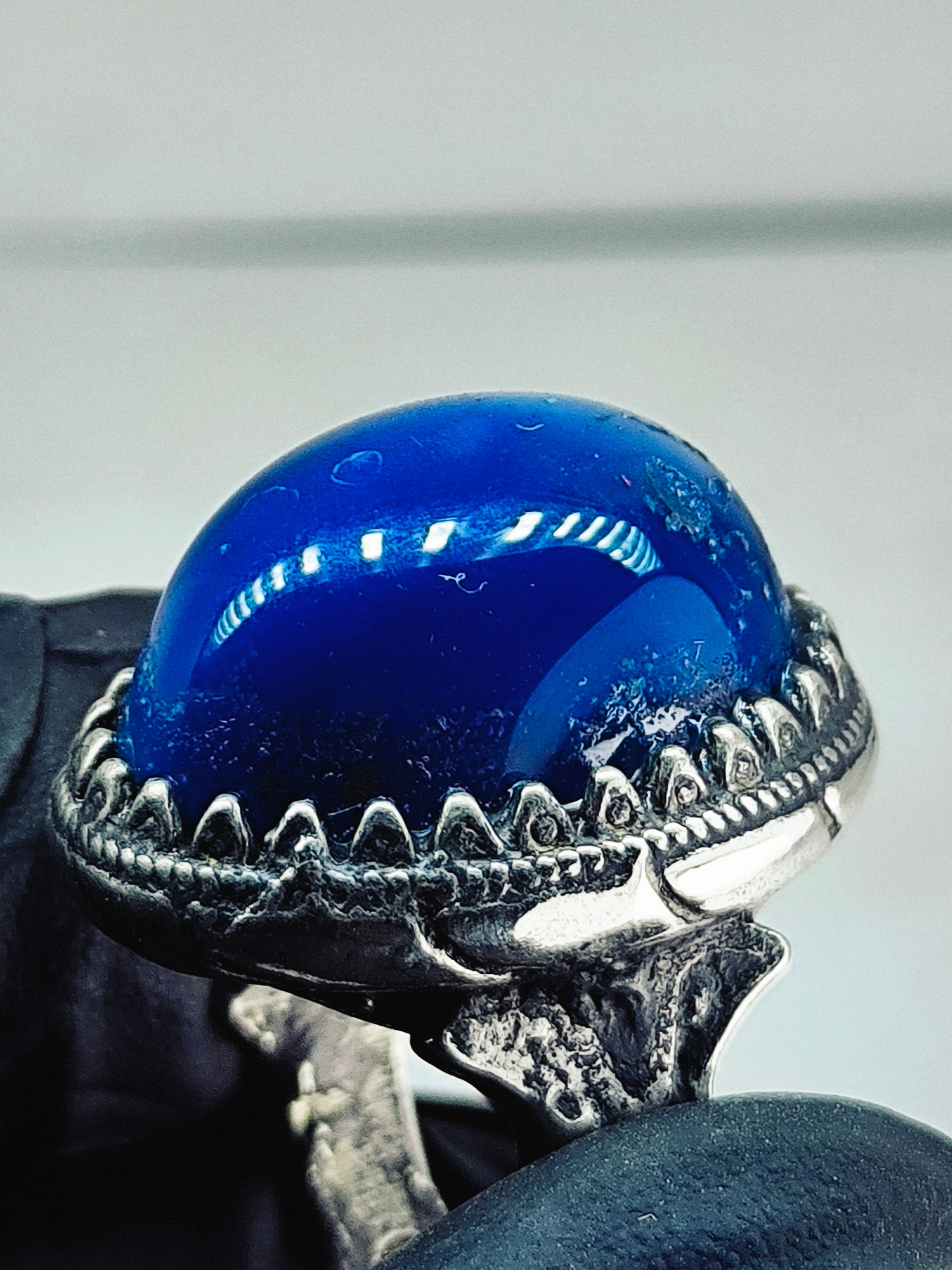 انگشترغول ویترینی عقیق آبی کلوخه برزیلی اصیل