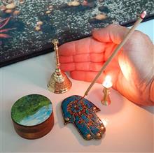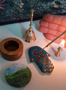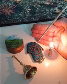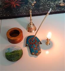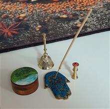 مجموعه وسایل جاعودی شمعدان زنگوله جعبه چوبی نقاشی طرح ونگور.