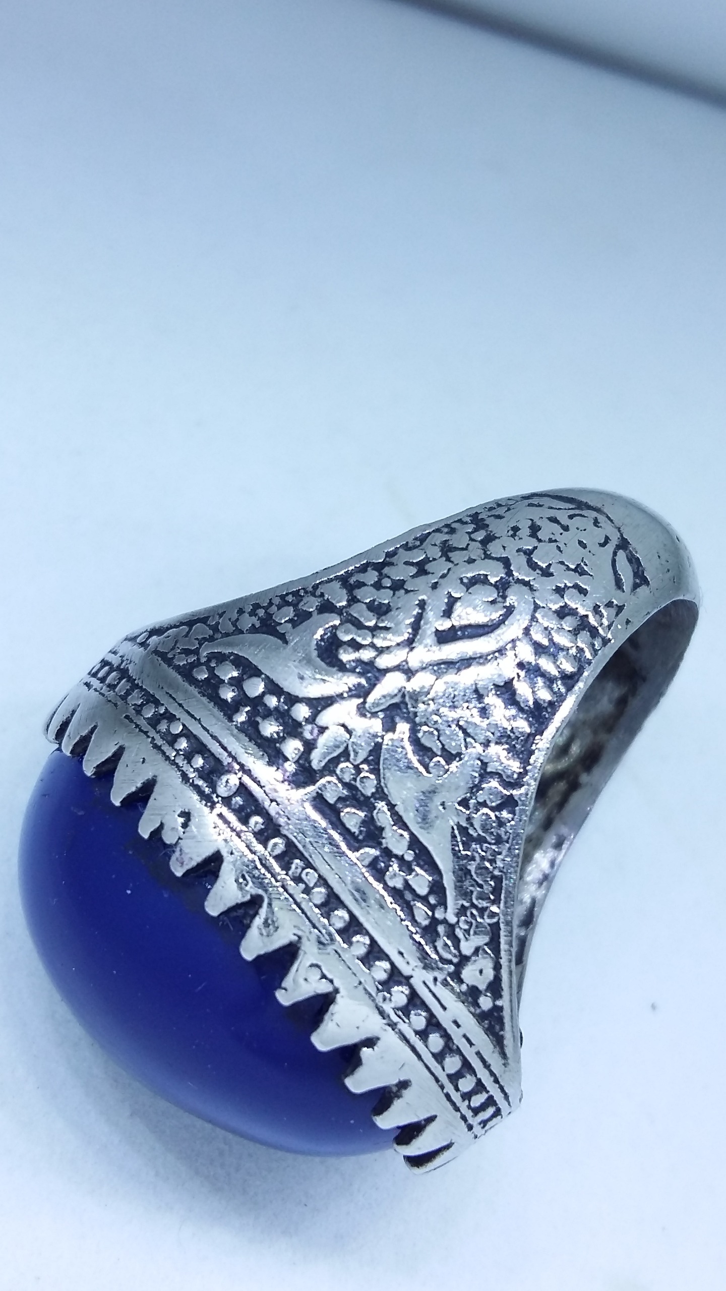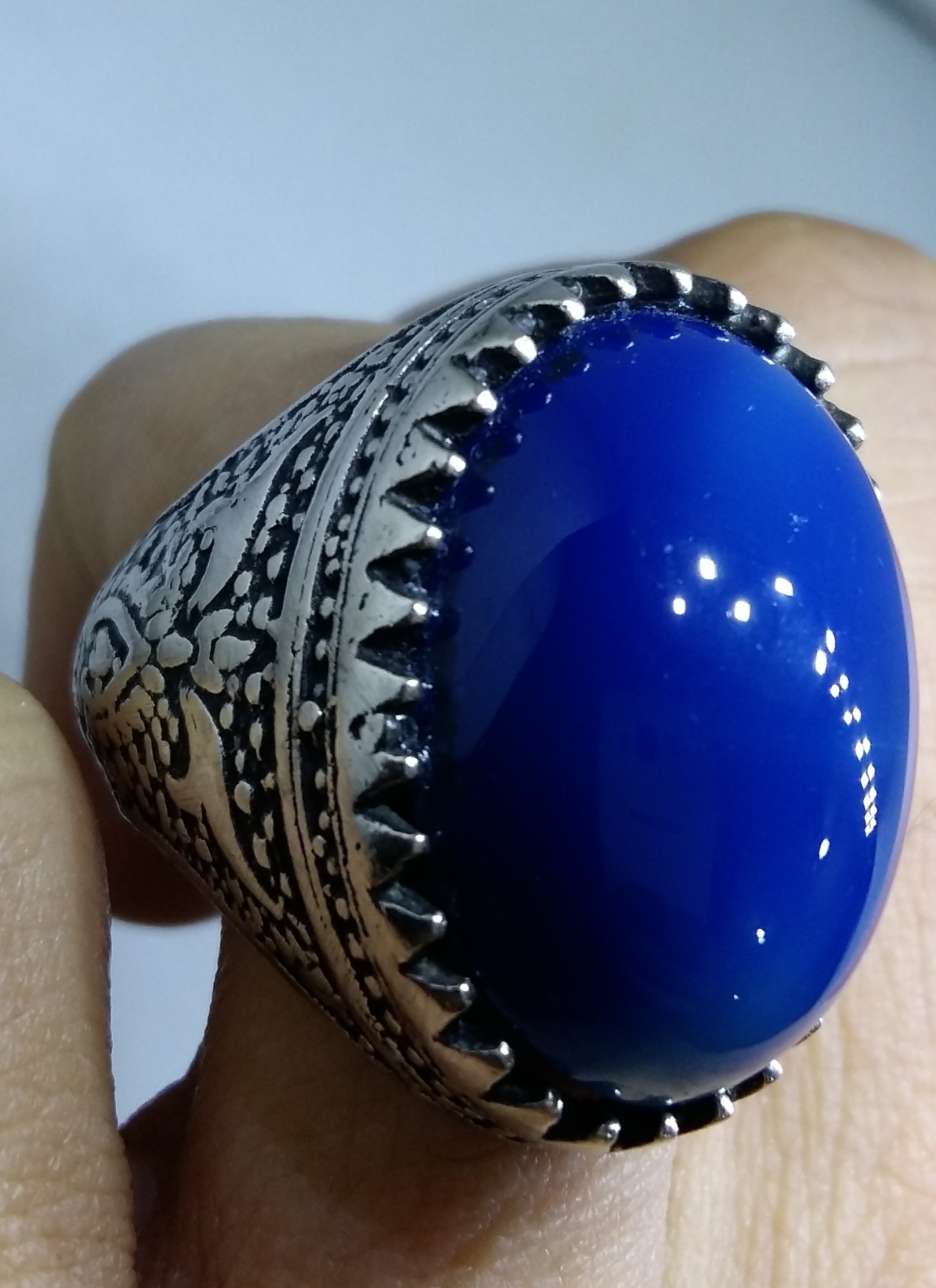انگشتر شاهانه قلمزنی عقیق آبی خوشرنگ معدنی