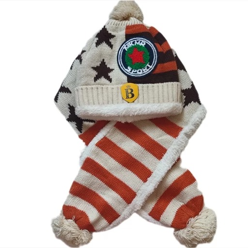 کلاه و شالگردن بافت تو کرک کرم قهوه ای