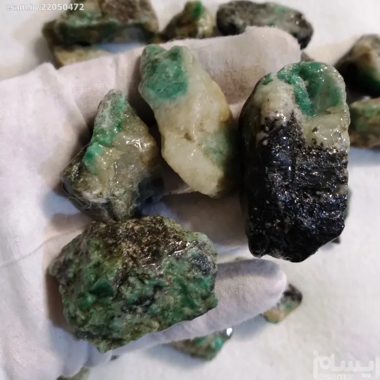 کلوخه های زمرد افغانستان و تورمالین سیاه روی بستر
