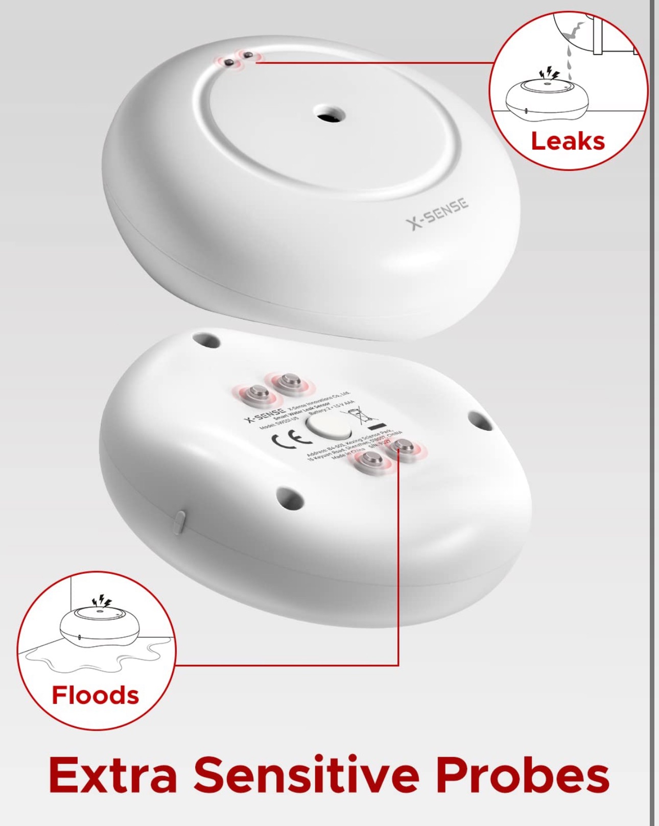 آشکارساز نشت آب وای فای X-Sense، هشدار حسگر هوشمند آب، هشدار آشکارساز آب با برد انتقال 1700 فوت برای آشپزخانهها، زیرزمینها، حمامها، 3 آشکارساز آب و 1 ایستگاه پایه، مدل SWS54
