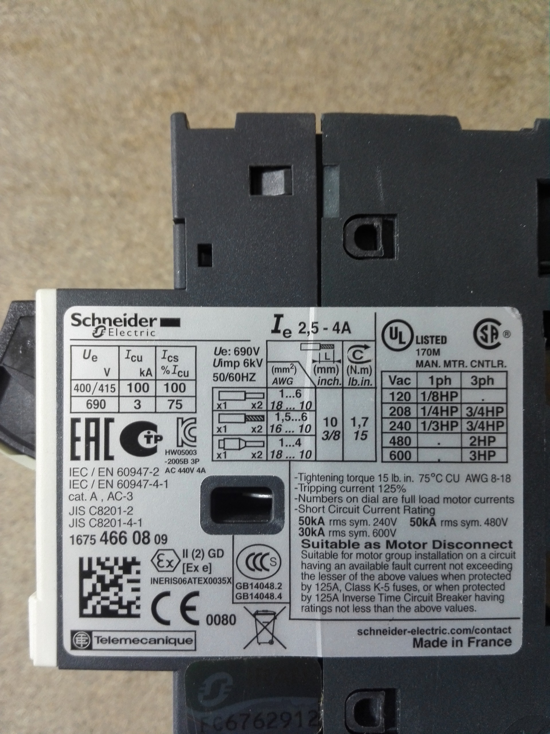 کلید حرارتی GV2ME08 اشنایدر-2.5تا4آمپر