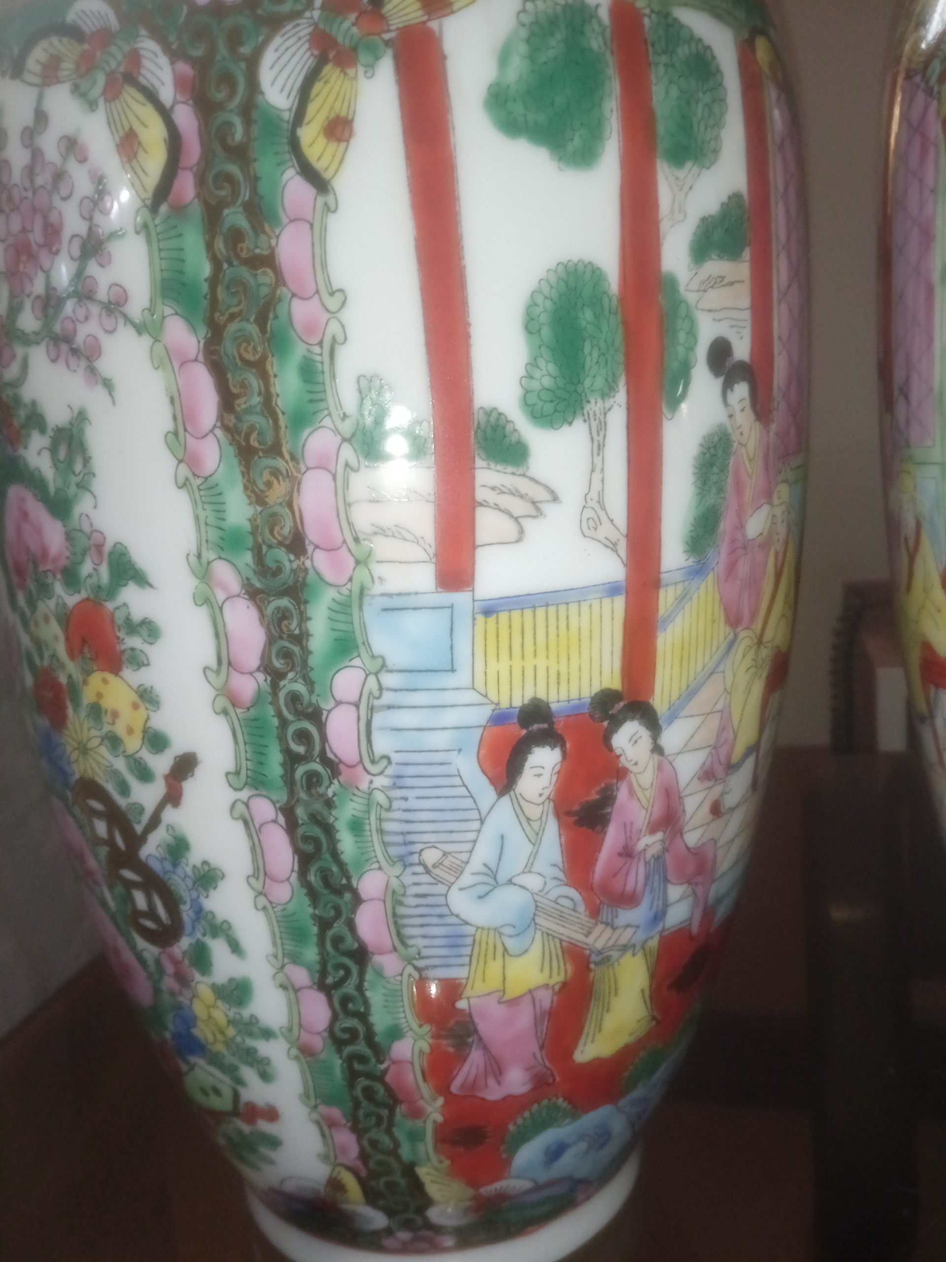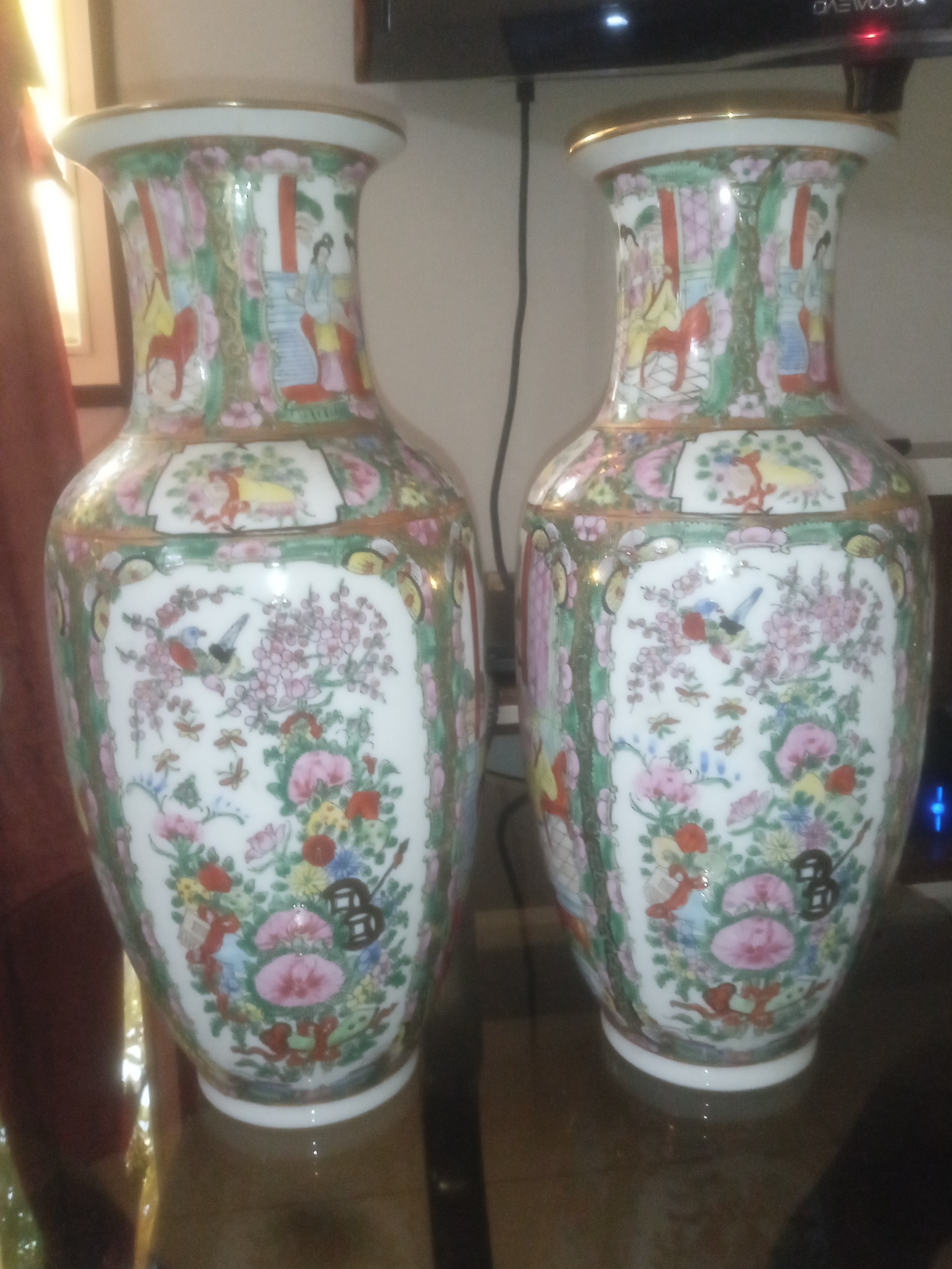 جفت گلدان قدیمی 37 سانتیمتری تمام نقاشی