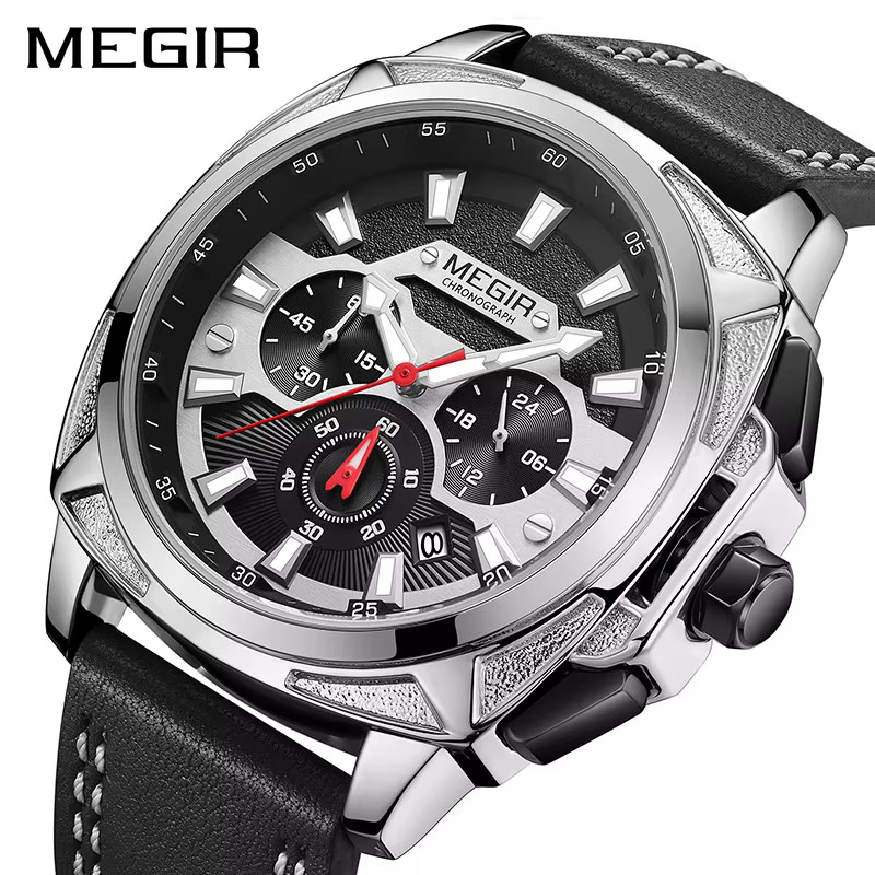 ساعت چرم مردانه سه موتور برند مگیر مدل 2128