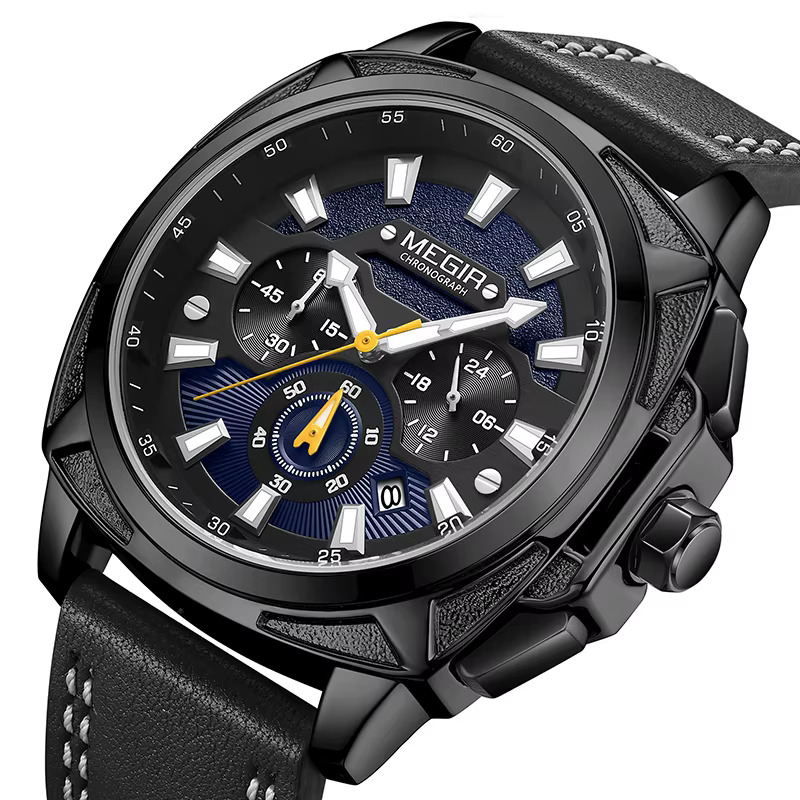 ساعت چرم مردانه سه موتور برند مگیر مدل 2128