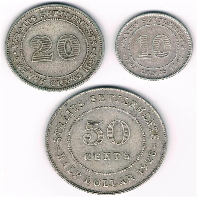 سکه های نقره 10 - 20 - 50 سنت مالایا جرج پنجم (Straits Settlements) دهه 1920
